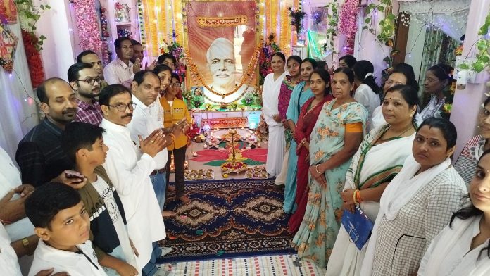 रतलाम,मध्यप्रदेश। ब्रह्माकुमारीज़, नज़रबाग़ कॉलोनी में दीपावली के उपलक्ष्य में दीप जगाने के पश्चात सभी भाई बहन हर्षोल्हास के साथ पर्व मनाते हुए । साथ में है सेवाकेंद्र संचालिका बी.के. सीमा दीदी।