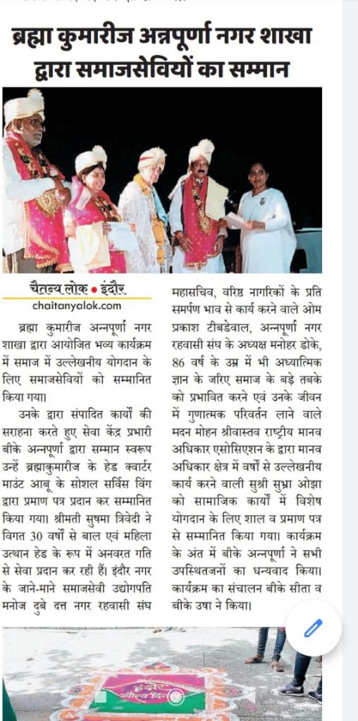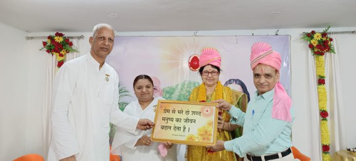 अलीराजपुर,मध्य प्रदेश: डॉ कैलाश गुप्ता,सीनियर सर्जन व कृष्णा बहन को गौरवमई राजकीय सेवा संपन्न करने के अवसर पर सम्मानित करते हुए ब्रह्माकुमार नारायण भाई, ब्रह्माकुमारी माधुरी बहन।