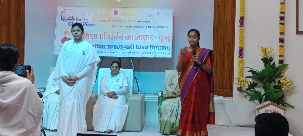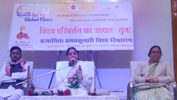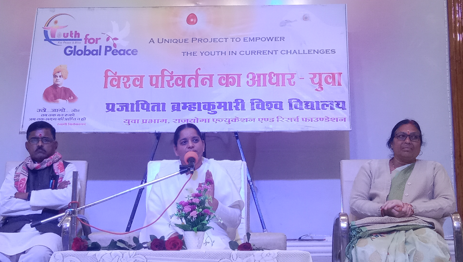 इस अवसर पर ब्रह्माकुमारी प्रीति बहिन जी ने युवाओं को संबोधन करते हुए कहा कि हमें अपने जीवन में सकारात्मकता को लाकर विश्व परिवर्तन के कार्य में सहयोगी बनना है।