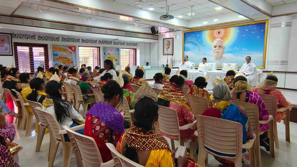 अहमदाबाद, गुजरात: प्रजापिता ब्रह्माकुमारी ईश्वरीय विश्वविद्यालय के गुजरात के क्षेत्रीय कार्यालय सुख शांति भवन में अंतर्राष्ट्रीय महिला दिवस के उपलक्ष में ‘नारी तू नारायणी’ कार्यक्रम का आयोजन किया गया था| इस स्नेह मिलन में हर परिवार से सास और उस परिवार की पुत्रवधू को विशेष आमंत्रित किया गया था| इस कार्यक्रम में कुल 25 सास और पुत्रवधु की जोड़ी ने हिस्सा लिया| सास और बहु की जोड़ी-जोड़ी को एक साथ-साथ बिठाया गया था|