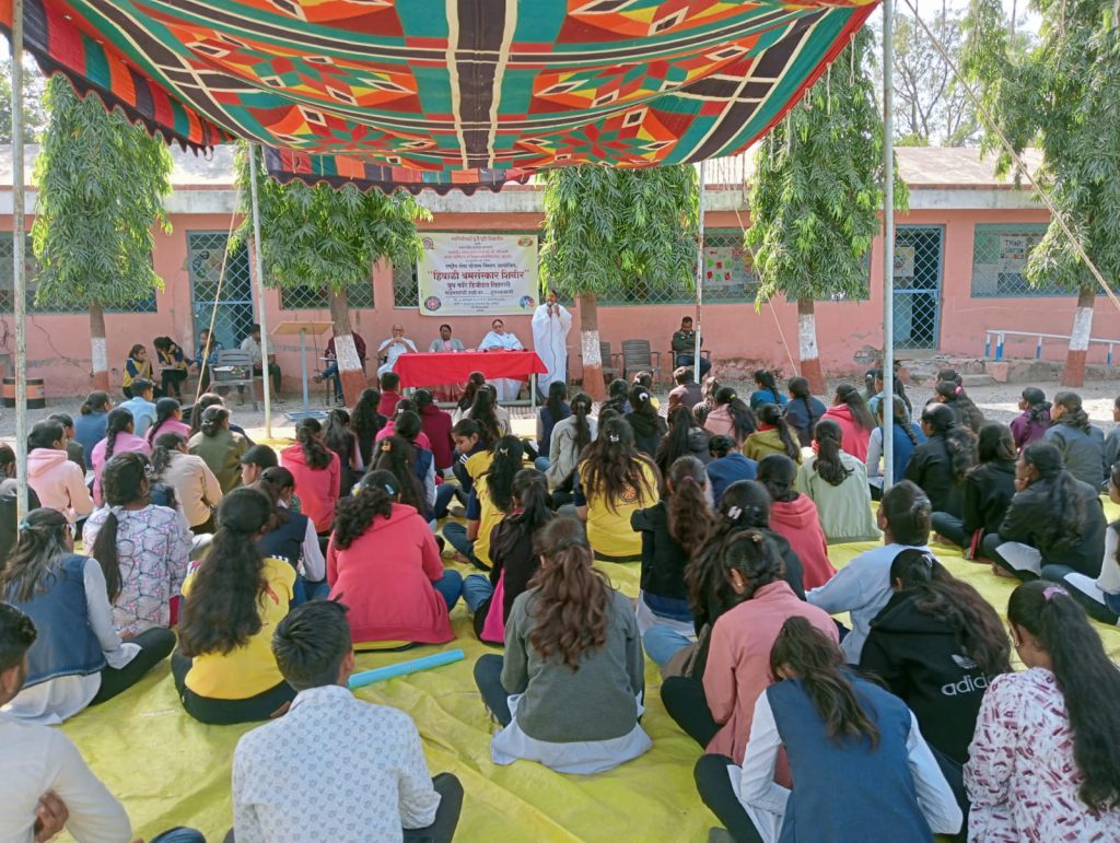 सटाना महाराष्ट्र: कॉलेज के एनएसएस कैंप में स्टूडेंट्स ने फूलों के द्वारा ब्रह्मकुमारी बहनों का स्वागत किया । ब्रह्माकुमारी अंजूलता दीदी ने संस्था और परमात्मा का परिचय दिया। बी.के. सोनू बहन ने संकल्प से सिद्धि का मंत्र दिया तथा सभी को गाइडेड मेडिटेशन कराया साथ में सभी को शुभ संकल्पों के कार्ड वितरित किया गया।