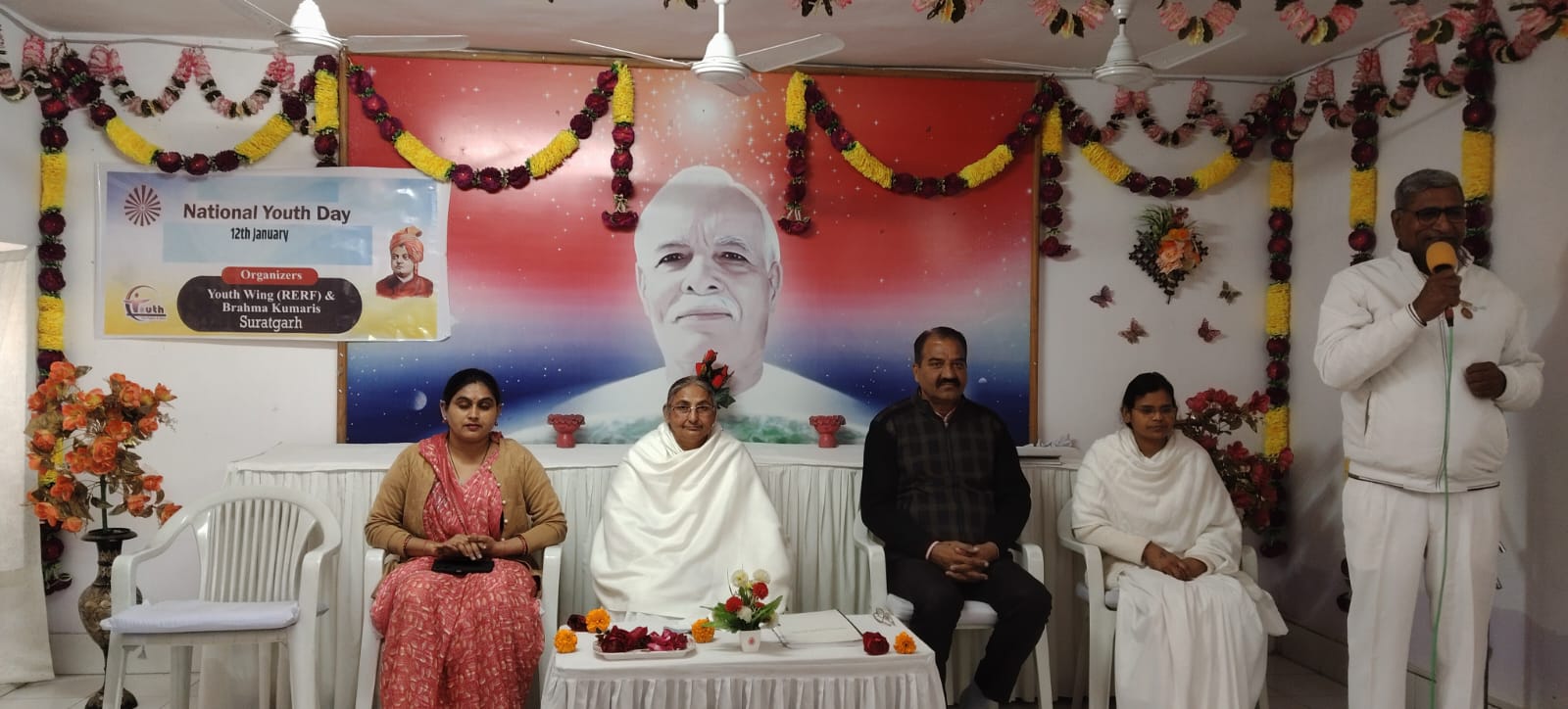 सूरतगढ़,राजस्थान: ब्रह्माकुमारी विश्वविद्यालय में राष्ट्रीय युवा दिवस के उपलक्ष में यूथ में आध्यात्मिक जागृति लाने के लिए एक कार्यक्रम आयोजित किया गया। जिसमें प्रदर्शनी पब्लिक स्कूल की वाइस प्रिंसिपल बहन अर्चना शर्मा भारत विकास परिषद की सदस्य भ्राता रमेश आसवानी एवं गणमान्य व्यापारी बीके विनोद गोयल जी उपस्थित रहे। सूरतगढ़ सेवा केंद्र की संचालिका बीके रानी बहन बीके पुष्पा बहन बीके सौम्या बहन ने बच्चों को संबोधित कर उन्हें आध्यात्मिकता का जीवन में बड़ा महत्व है पर समझाया और नशा मुक्त जीवन जीने के लिए संकल्प कराया लगभग 50 यूथ ने इस कार्यक्रम में भाग लिया।