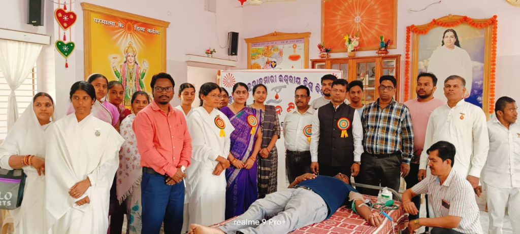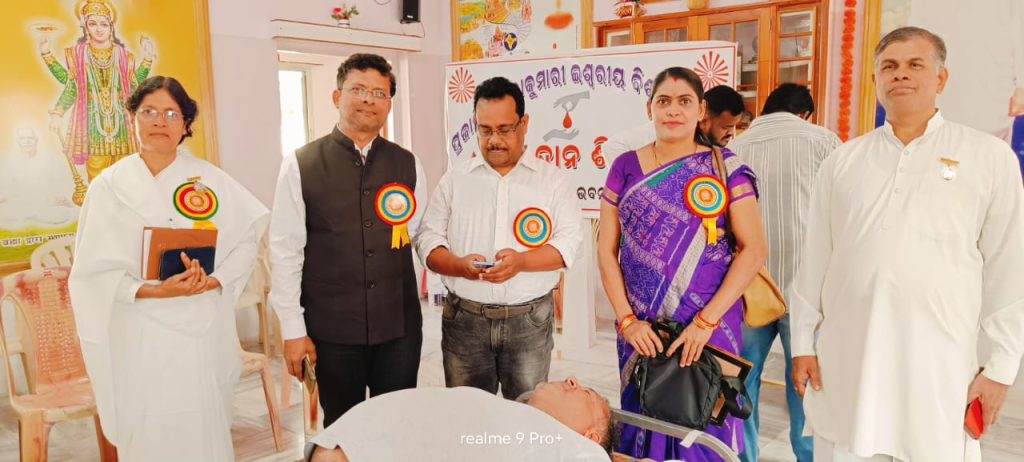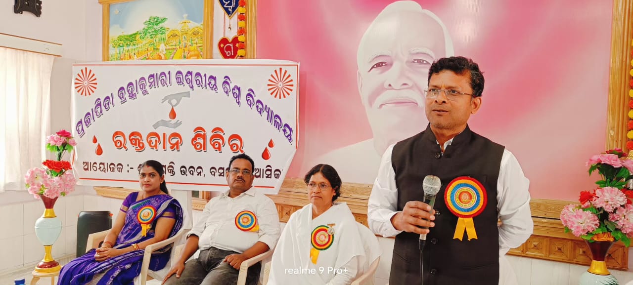 आशिका, ओडिसा। ब्रह्मा कुमारीज सेवाकेंद्र पर आयोजित रक्तदान शिविर का उद्घाटन अवसर पर दीप प्रज्वलन के साथ परमात्मा शिव की स्मृति में खड़े है आशिका शुगर इंडस्ट्री परिचालना निर्देशक भ्राता सुसान्त कु पंडा, आशिका गोस्टी स्वास्थ्य केन्द्र सुपरीटेंडेंट भ्राता बालगोपाल बेहेरा, आशिका बी.पी ऍम भगनी सागरिका मिश्रा और ब्रा. कु. प्रभाती बहन।