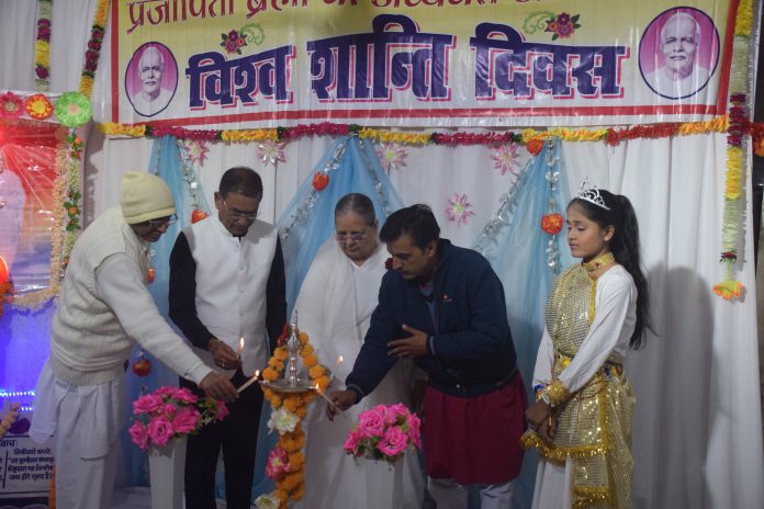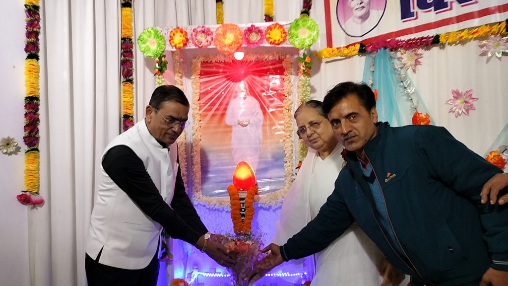 रामगढ़, झारखण्ड: प्रजापिता ब्रह्माकुमारी ईश्वरीय विश्व विद्यालय के स्थानीय सेवा केन्द्र ब्रह्माकुमारी संस्थान श्री राज कॉमप्लेक्स, नेहरू पथ, त्रिकोण शिवमंदिर के पास, रामगढ़ कैन्ट में संस्था के संस्थापक पिताश्री ब्रह्मा बाबा के स्मृति दिवस पर बी के प्रदीप, कमल बगड़िया, समाजसेवी एवं उद्योगपति, ब्रह्माकुमारी निर्मला तथा चन्द्रभान सरस्वती विद्या मन्दिर के प्रचार्य वरूण कुमार चौधरी दीप प्रज्वलित करते हुए ।