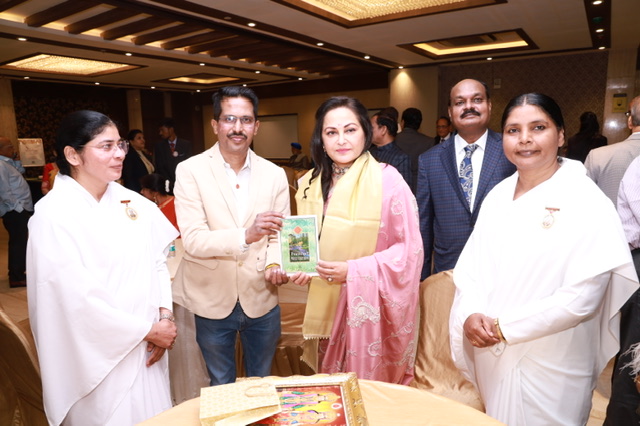 पुणे-बाणेर (महाराष्ट्र): अभिनेत्री जयाप्रदा, अभिनेता रजा मुराद और अभिनेता सचिन पिळगांवकर से बाणेर सेवाकेंद्र प्रभारी बी. के. डॉ. त्रिवेणी, सोनई सेवाकेंद्र प्रभारी बी. के. उषा तथा बी. के. डॉ. दीपक हरके ने स्नेहभरी मुलाकात की । डॉ. त्रिवेणी दीदी, उषा दीदी और बी. के. डॉ. दीपक हरके ने अभिनेत्री जयाप्रदा, अभिनेता रजा मुराद और अभिनेता सचिन पिळगांवकर को संस्था की गतिविधियों से अवगत कराया तथा उन्हे संस्था के आंतरराष्ट्रीय मुख्यालय माऊंट आबू आने का निमंत्रण दिया । बी. के. डॉ. त्रिवेणी दीदी तथा बी. के. उषा दीदी ने अभिनेत्री जयाप्रदा का स्वागत किया । बी. के. डॉ. दीपक हरके ने अभिनेता रजा मुराद का स्वागत किया। साथ ही सभी अन्य कलाकारों को लक्ष्मी नारायण की फ्रेम और टोली भेट की ।