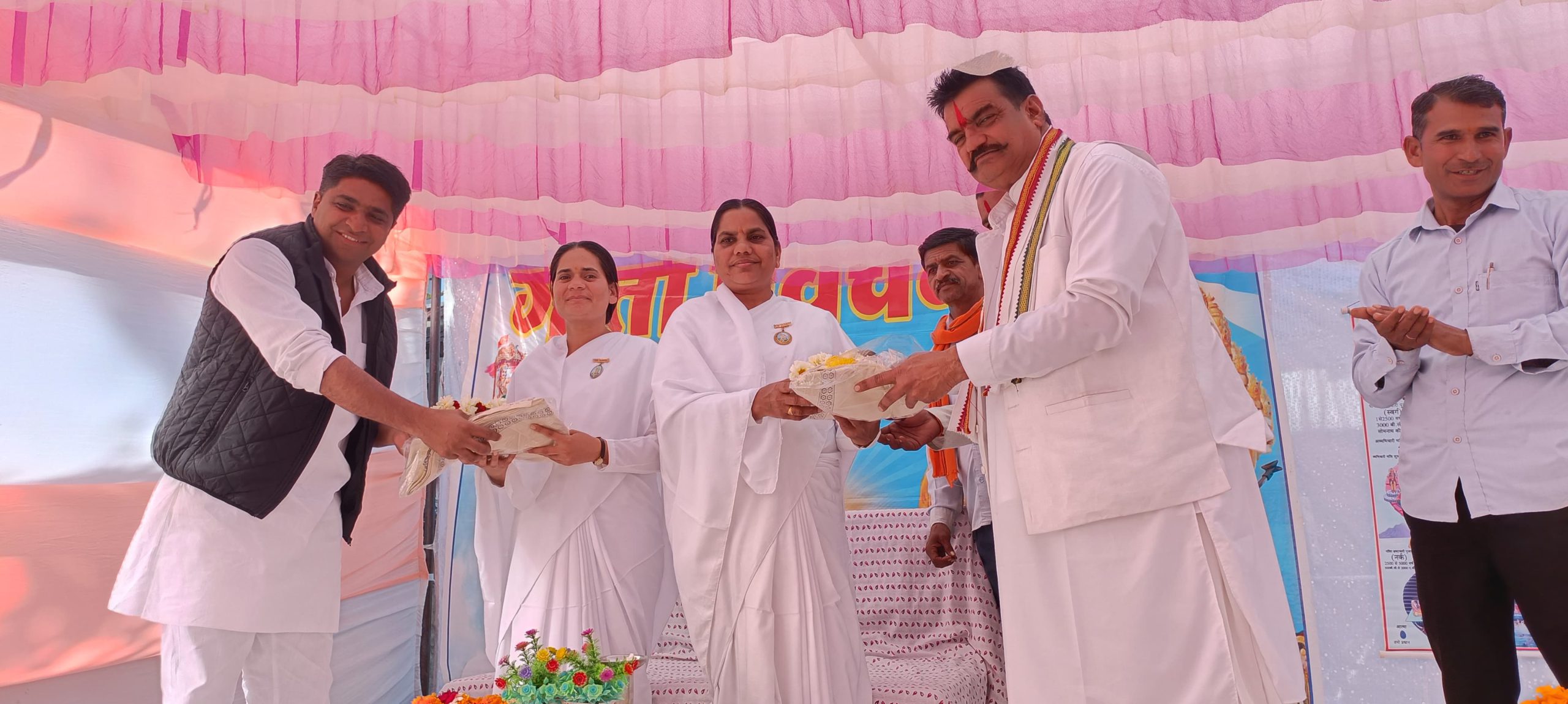 राजगढ़ ,ब्यावरा मध्य प्रदेश: ग्राम धामधौर में ब्रह्माकुमारी सुरेखा दीदी द्वारा दिए गए सप्त दिवसीय गीता व्याख्यान माला के पश्चात शॉल व श्रीफल से ब्रह्माकुमारी सुरेखा दीदी का सम्मान करते हुए जिला पंचायत उपाध्यक्ष पर्वत सिंह गुर्जर व राजयोग शिक्षिका ब्रह्माकुमारी लक्ष्मी दीदी का सम्मान करते हुए ब्यावरा के पूर्व विधायक पुरुषोत्तम दांगी।
