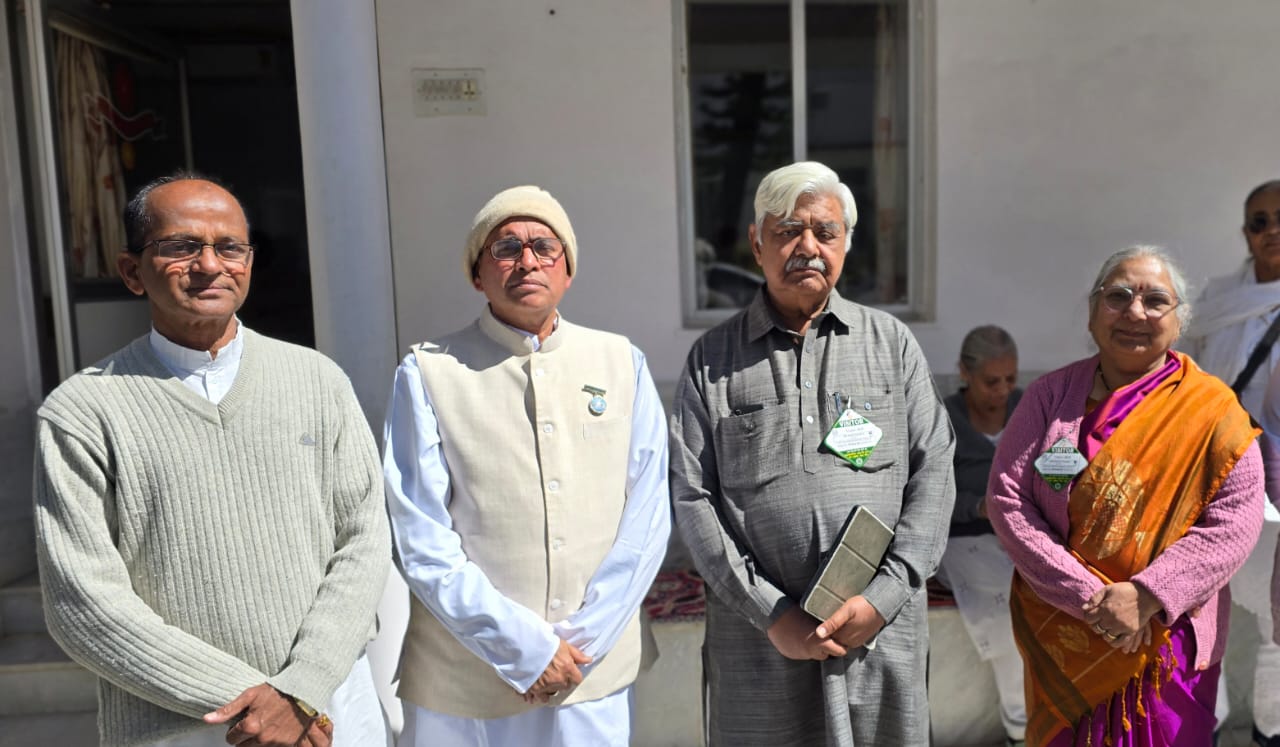 आबू पर्वत,राजस्थान: विश्व हिंदू परिषद के आन्तरराष्ट्रीय आध्यक्ष अलोक कुमार जी अपनी धर्मपत्नी श्रीमती मंजू देवी जी के साथ ब्रह्माकुमारीज मुख्यालय पाण्डव भवन में पधारे, अवलोकन करने के बाद ग्रुप फोटो में राजयोगी ब्र.कु. शशिकांत भाई, राजयोगी ब्र.कु. चंद्रशेखर भाई जी, मा. अलोक कुमार जी एवं श्रीमती मंजू देवी जी।