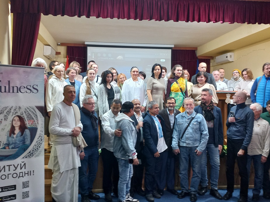 Kiev, Ukraine: Recently a small group of BKs visited the Indian Embassy to greet the Head of the Cultural Wing at a public event.