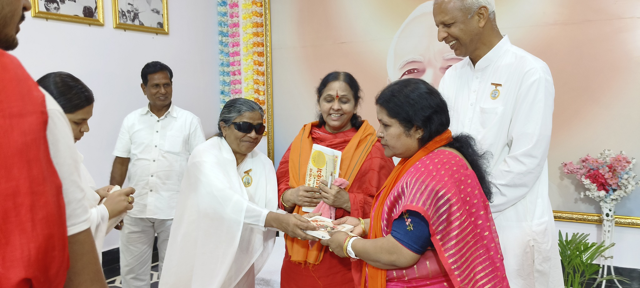 नवापारा राजिम ,छत्तीसगढ़: सुप्रसिद्ध भजन गायिका साध्वी प्रज्ञा भारती जी जबलपुर व श्रीमती अंजू गबेल छत्तीसगढ़ भाजपा महिला मोर्चा का सेवाकेंद्र आगमन पर ईश्वरीय सौगात व मुख्यालय माउंट आबू का निमंत्रण देते हुए ब्रह्माकुमारी पुष्पा बहन व ब्रह्मा कुमार नारायण भाई।