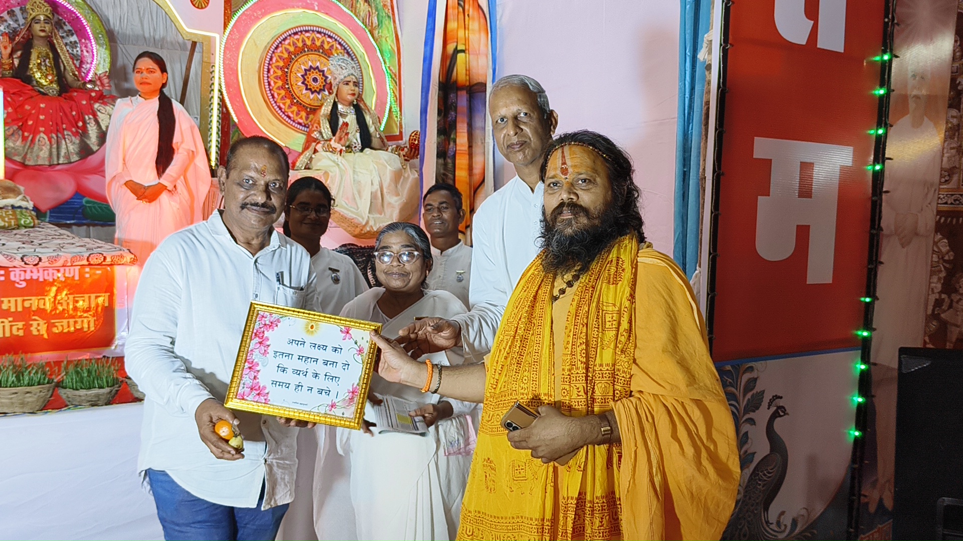 राजिम,छत्तीसगढ़: राजिम कुंभ कल्प 2025 महाशिवरात्रि के अवसर पर शिव दर्शन आध्यात्मिक मेले का उद्घाटन करने के पश्चात बाल योगी महामंडलेश्वर श्री राम बालक दास जी महाराज, भ्राता सुधीर दुबे संत समागम अधिकारी को ईश्वरीय गिफ्ट देते हुए ब्रह्माकुमारी पुष्पा बहन, ब्रह्मा कुमार नारायण भाई व अन्य।