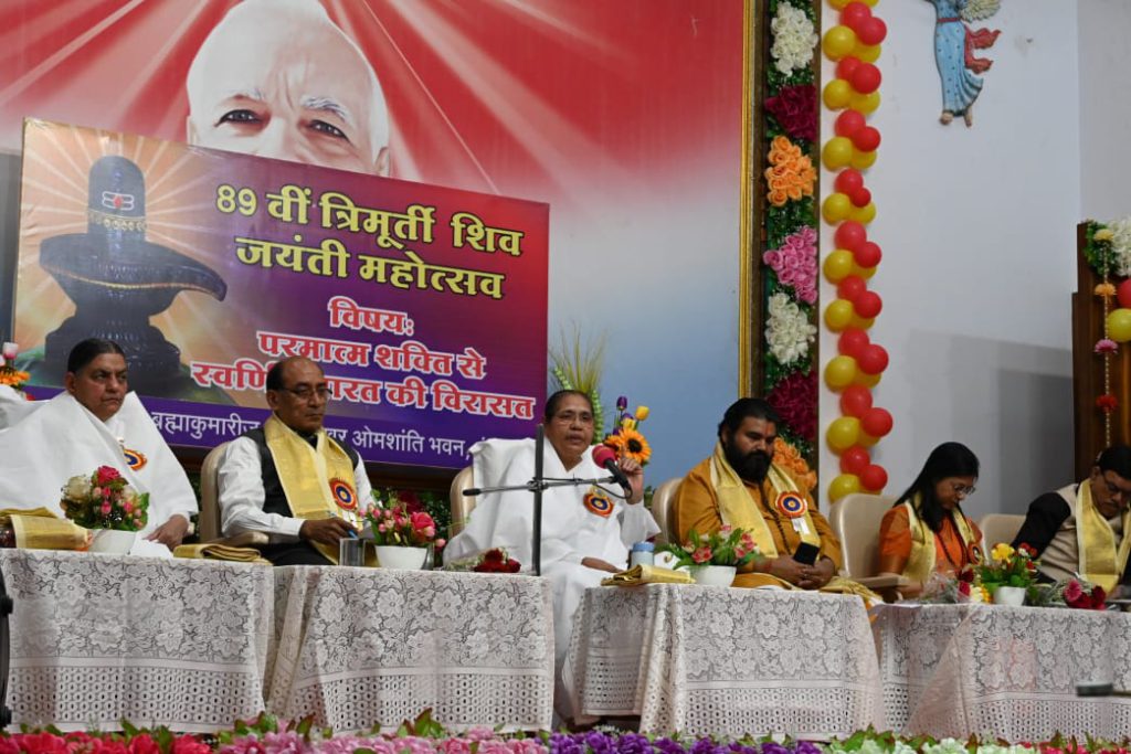 उक्त विचार इंदौर जोन की क्षेत्रीय निर्देशिका ब्रह्माकुमारी हेमलता दीदी ने ओमशान्ति भवन ज्ञान शिखर के ओमप्रकाश भाईजी सभागृह में शिवरात्रि के अवसर पर आयोजित कार्यक्रम “परमात्म शक्ति से स्वर्णिम भारत की विरासत” विषय पर व्यक्त किए। आगे आपने बताया कि आज के परिदृश्य पर हम दृष्टि डाले जहां चारों ओर भय , अशांति, लड़ाई-झगड़ा खून खराबा, प्रकृति की हलचल देखने में आ रही है, किंतु कहावत है अति के बाद ही अंत होता है और अब समय है जब परमात्मा स्वयं इस सृष्टि पर आकर सत्य ज्ञान के माध्यम से मानव को पुनः अपने मूल सतोगुणी संस्कार की ओर ले जाने का पुरुषार्थ करा रहे हैं तथा सहज राजयोग सीखाकर विकारों और विकर्मों को नाश करने की विधि बता रहें हैं जिससे मानव फिर से देवत्व की प्राप्ति कर सके और इस सृष्टि को फिर से अपनी खोई हुई स्वर्णिम और सुखमय भारत की विरासत मिल सके।