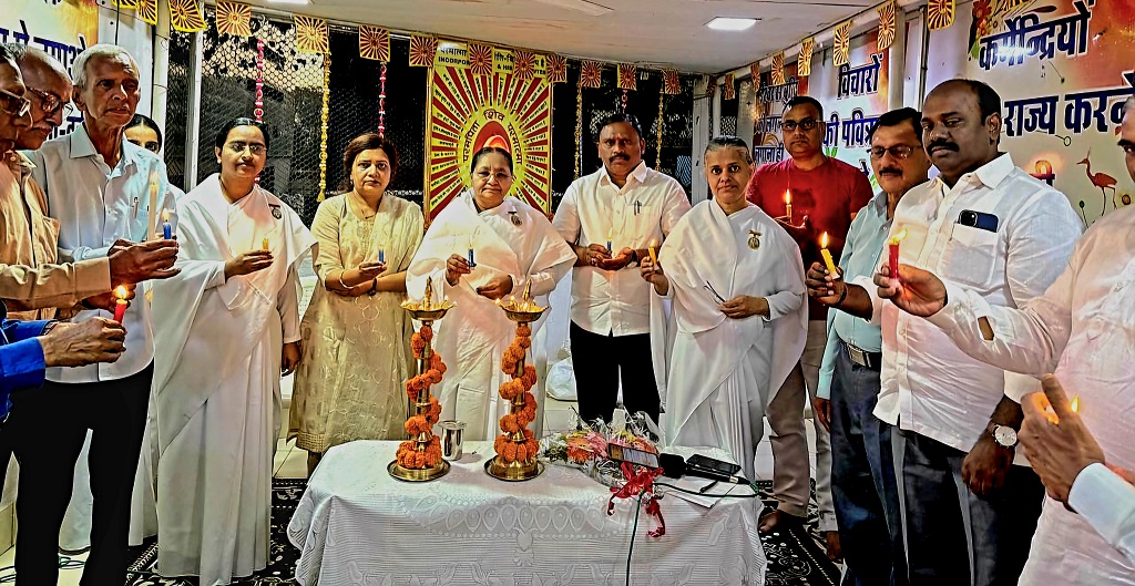 नवी मुंबई– सानपाडा : महाशिवरात्री कार्यक्रम का दिप प्रज्वलन कर उद्घाटन करते हुए ब्र.कु. शीला दिदी ,दशरथ भगत माजी सभापति एंड विरोधी पक्ष नेता ,ब्र.कु. शुभांगी बहन आशा पाटील माजी नगर सेवक, संजीव कुमार चीफ मैनेजर ऑफ यूको बैंक पवार ,भ्राता रविन्द्र पवार रिटायर्ड ACP भ्राता खाडे प्रेसिडेंट ऑफ सीनियर सिटीजन एसोसिएशन ब्र.कु .निलम बहन।
