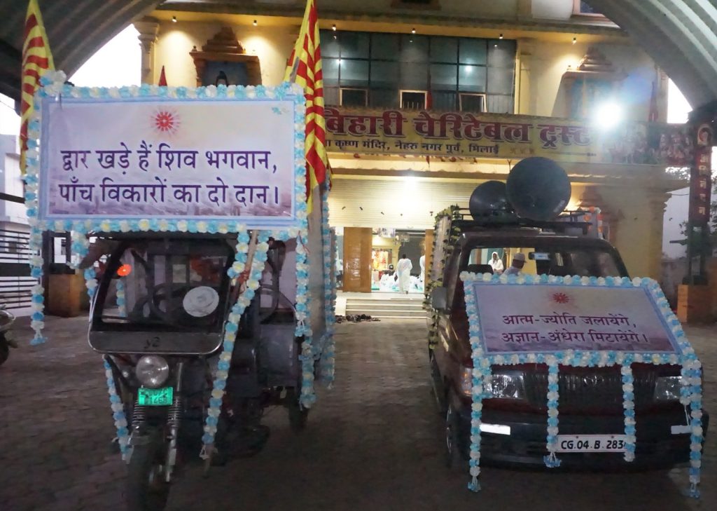 भिलाई, छ.ग.: प्रजापिता ब्रह्माकुमारी ईश्वरीय विश्व विद्यालय द्वारा नेहरू नगर में आयोजित आध्यात्मिक शिव संदेश रैली में श्वेत वस्त्रधारी भाई-बहनों ने अपनी एकता और शिव के संदेश के साथ आध्यात्मिकता का परचम लहराया।