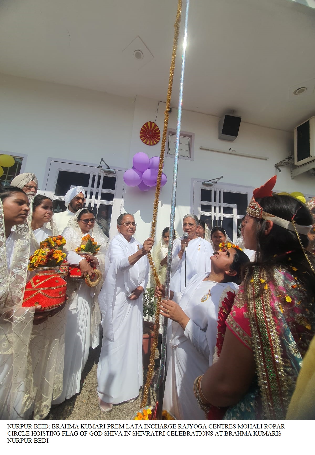Thereafter, Brahma Kumari Premlata, Incharge of Rajyoga centers of Brahma Kumaris in Mohali Ropar Circle, hoisted the Shiv flag at Rajyoga Bhawan Friends Colony and made everyone take a pledge to keep doing selfless service to make the world a better place with their body, mind and wealth. On this occasion, Brahma Kumari Dr. Rama from Mohali, Brahma Kumari Poonam from Nurpur Bedi, Brahma Kumari Anju from Ropar, Brahma Kumari Swaraj from Kurali, Brahma Kumari Bhavana and Namrata from Kharar and many other Rajyoga teachers were also present.