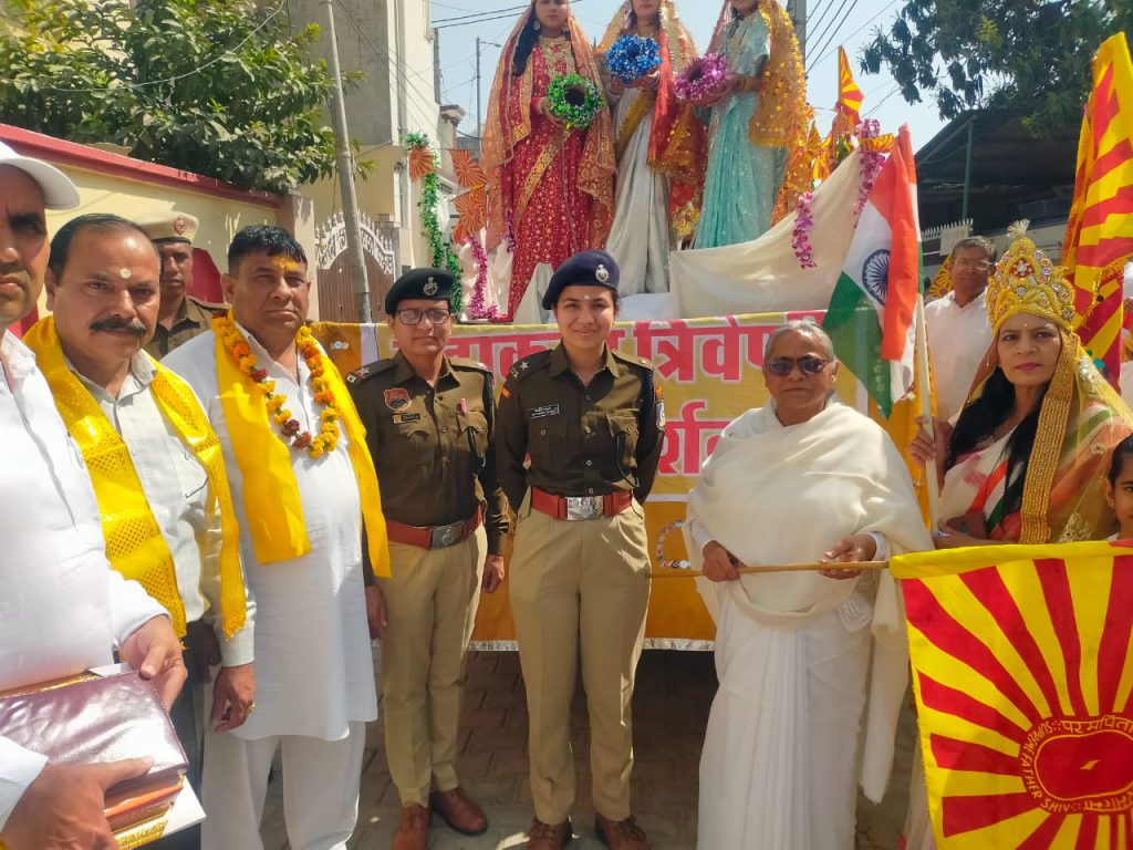 महाशिवरात्रि के पावन पर्व के उपलक्ष में चरखी दादरी सेवाकेंद्र पर महाकुंभ त्रिवेणी संगम दर्शन चैतन्य गंगा, यमुना, सरस्वती की झांकियों का शुभारंभ करते हुए IPS दिव्यांशी सिंगल बहन, एसडीओ जगदीश कुमार, व्यापार मंडल प्रधान जय भगवान मस्ताना,दादरी जिला प्रभारी बहन प्रेमलता जी