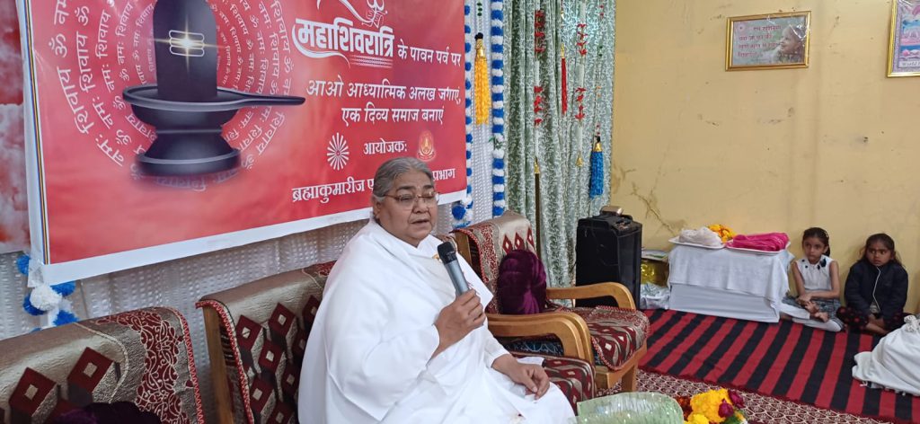 मुख्य वक्ता के रूप मैं पधारी आदरणीय शैलजा बहन जी के महा शिवरात्रि का आध्यात्मिक महत्व बताते हुए कहा कि यह कोई 24 घंटे कि दिन और रात की कोई बात ही नहीं हैं!परंतु जब सारे संसार के अंदर अज्ञानता कि अंधकार रात्रि फैल जाती हैं और यह रात्रि की बेला जहां मनुष्य आत्मा अनेक प्रकार जी बुराईयों विकृतियों से जिनका जीवन घिर जाता हैं । और अनेक रूप से अज्ञानता का अंधकार और और उस में सबसे बड़ा अंधकार हैं मानव जीवन मैं अहंकार । जब व्यक्ति के अंदर सही समझ या ज्ञान का प्रकाश नहीं होता हैं !ऐसे समय पर ही हम परमात्म शिव को कहा जाता हैं ज्ञान सूर्य ज्ञान सागर जब वो ज्ञान सूर्य इस संसार मैं अवतरित होते हैं तो आज्ञान अंधेरे का विनाश होता हैं। और इस लिए यह समय काल ही हैं। जो रात्रि के समय मैं परमात्मा ने आकार के अनेक आत्माओं की ज्योति जगाई। आध्यात्मिकता ना केवल व्यक्तिगत विकास का साधन हैं बल्कि समाज मैं सकारात्मक बदलाव लाने का मार्ग भी हैं ।जब हमारा मन सशक्त होता हैं तभी है एक सशक्त समाज का निर्माण कर और एक दिव्य समाज की कल्पना कर सकते हैं । महाशिवरात्री के महोत्सव मैं पधारें भाई बहनों सहित शहर के गणमान्यजनों का नृत्य के माध्यम से स्वागत किया गया ! बी.के. कल्पना बहन के परमात्मा के सत्य परिचय दिया ।