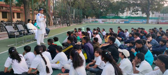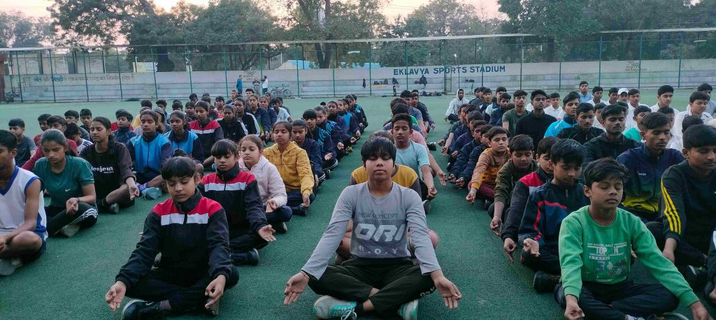 आगरा, उत्तर प्रदेश: एकलव्य स्पोर्ट्स स्टेडियम में स्पोर्ट्स विंग नेशनल कॉर्डिनेटर बी के जगबीर भाई जी खिलाड़ियों और कोचेस को दिए मन को खेल के दौरान या किसी भी विपरीत परिस्थिति में एकाग्र करने की टिप्स। आगरा स्पोर्ट्स विंग कॉर्डिनेटर बी के संगीता बहन ने बताया, कंपटीशन के दौरान बॉडी लैंगुएज चेंज होने के कारण और उसे कंट्रोल करने की विधि राजयोग मेडिटेशन, साथ प्रोग्राम के अंत में खिलाड़ियों ने मेडिटेशन का अभ्यास किया।