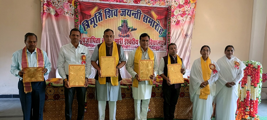 ब्यावरा, मध्य प्रदेश: महाशिवरात्रि पर्व पर परमात्मा संदेश देती हुई । राजगढ़ जिले की संचालिका ब्रह्माकुमारी मधु दीदी एवं मंच पर विराजमान जिला पंचायत अध्यक्ष भ्राता चंद्रसिंह सोंधिया , वरिष्ठ एडवोकेट चंद्रकांत त्रिपाठी , दांगी समाज के जिला अध्यक्ष रामबगस दांगी , वरिष्ठ डॉ अशोक अग्रवाल , खाद्य व्यापारी भ्राता अशोक दांगी , ब्रह्माकुमारी लक्ष्मी बहन कार्यक्रम में अतिथियों द्वारा दीप प्रज्ज्वलित कर परमात्मा शिवा ध्वज फराक अतिथियों को ईश्वरीय सौगात भेंट की गई।