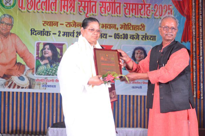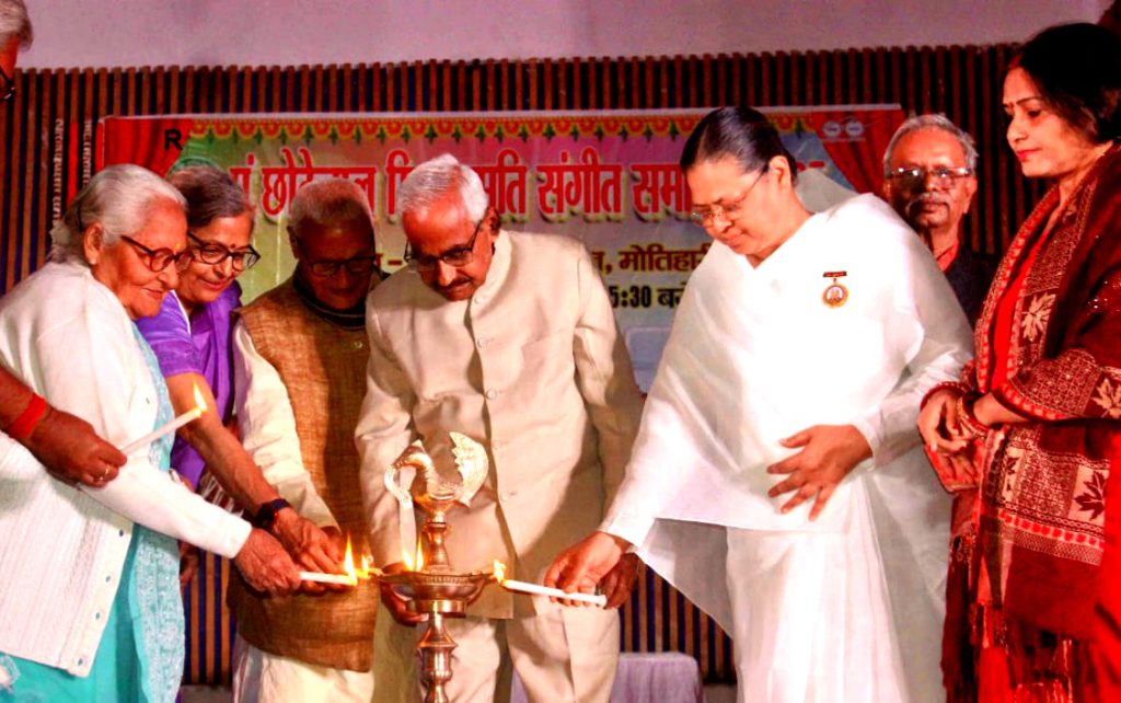मोतिहारी,बिहार। पंडित छोटेलाल मिश्र संगीत कला महाविद्यालय द्वारा नगर भवन मे आयोजित वार्षिक समारोह का उद्घाटन पूर्व कुलपति डॉक्टर रवींद्र कुमार रवि ,बीके मीना ,दूरदर्शन कलाकार चमेली पाणडेय,डॉक्टर मंजरी वर्मा ने,दीप प्रज्वलित कर किया। कालेज के प्राचार्य शैलेन्द्र सिन्हा ने बीके मीना को ईश्वरीय सेवा कार्यो के लिए सम्मानित किया।
