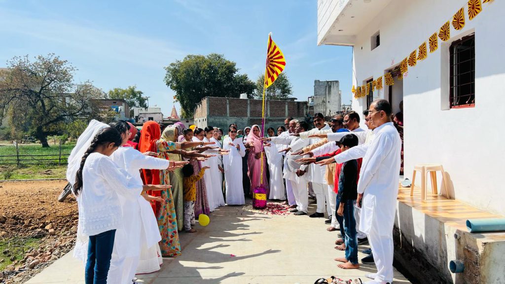 नामली में शिव जयंती महोत्सव पर प्यारे बाबा का झंडा फहराते हुए अतिथि भ्राता मुकेश तलवाडिया जी हाईकोर्ट एडवोकेट,कॉलेज प्रिंसिपल बहन प्रतिभा बैरागी जी, वार्ड पार्षद बहन चंदा सोनावा जी, रतलाम सेवा केंद्र संचालिका मनोरमा दीदी, नामली सेवा केंद्र संचालिका पार्वती दीदी ,बड़नगर सेवा केंद्र संचालिका नीलम दीदी एवं समस्त भाई बहने बाबा के झंडे के नीचे प्रतिज्ञा करते हुए ।