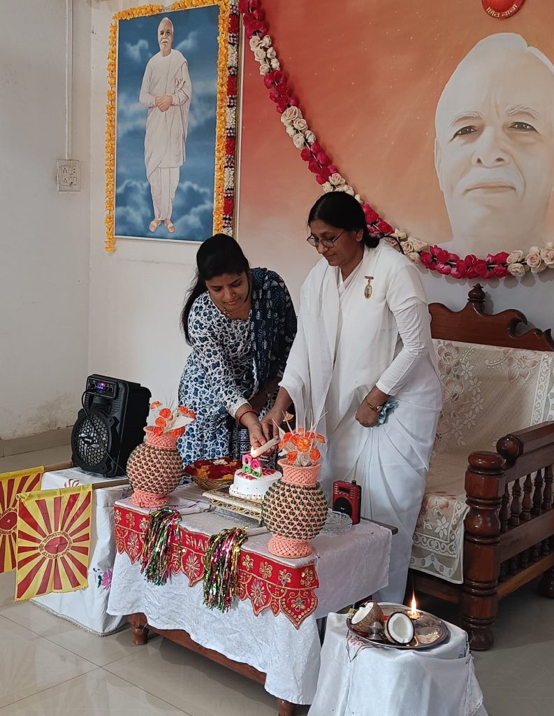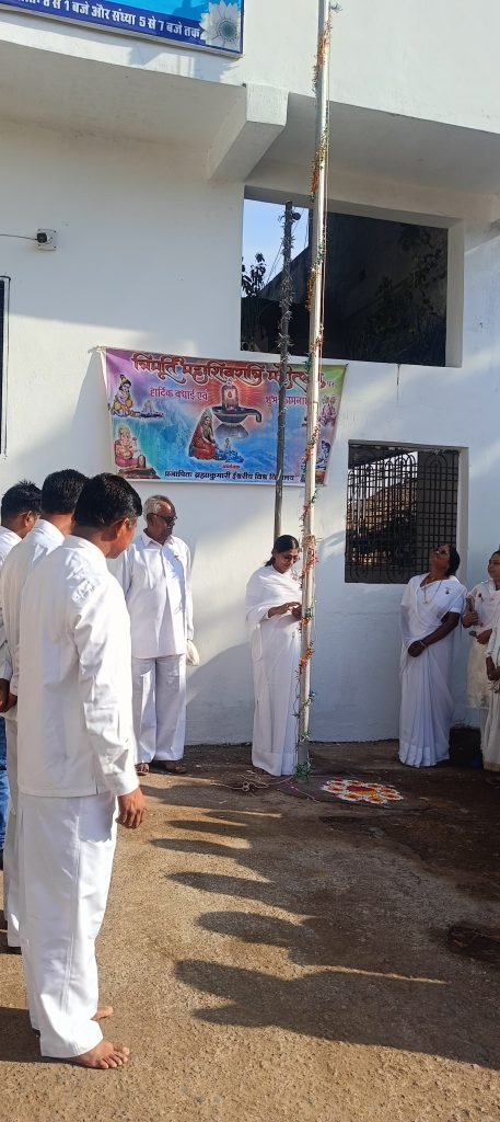 धडगांव, महाराष्ट्र। ब्रह्माकुमारीज़ में आयोजित महाशिवरात्रि महोत्सव में केक काटते और शिव ध्वजा रोहन करते हुए आदिवासी छात्रावास की सुपरिंडेंटेंट श्रीमती राजश्री शहाणे और बी. के. सरिता बहन। इस अवसर पर शिव ध्वजा रोहन के साथ साथ छात्रों ने सर्व धर्म आत्मा का पिता शिव है इस पर लघु नाटिका प्रस्तुत की गई।