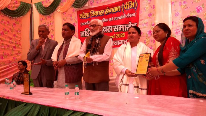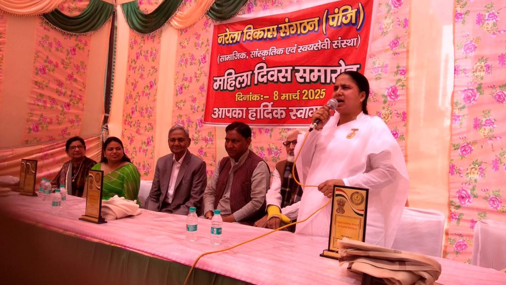 दिल्ली नरेला : नरेला विकास संगठन द्वारा आयोजित कार्यक्रम में समाज के विकास के लिए कार्य कर रही महिलाओं को सम्मानित किया गया । ब्रह्मा कुमारी गीता बहन -उद्यान नरेला सेवाकेंद्र की प्रभारी को भी सम्मानित किया गया । इस अवसर पर नरेला के विधायक- भ्राता राज करण खत्री जी भी उपस्थित थे, नरेला विकास संगठन के चेयरमैन – भ्राता हाज़ी अब्बास अली जी , प्रधान- भ्राता हेमराज़ बंसल जी और बहावलपुर संस्था के प्रधान- भ्राता नूतन दास अरोड़ा जी, नरेला के गणमान्य व्यक्ति उपस्थित थे । नरेला विकास संगठन की ओर से संगीता बहन को शॉल ओढ़ाकर और एप्रिसिएशन अवॉर्ड देकर सम्मानित किया ।