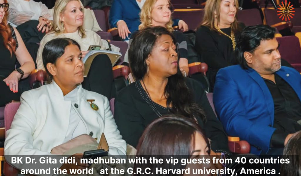 Boston, America: BK Dr. Gita didi, madhuban receiving the momento from Baron Alec Stern as the Chief Guest, Worshipful Mayors Cllr Salim Chowdhury (Harrow) and Cllr Mohammad Amirul Islam (Enfield), along with Mayoresses Jesmin Chowdhury and Rokshana Afroze. Prof. Dr. Parin Somani, LOSD’s Director CEO. after her speech along with presentation about the empowering influence of rajyoga meditation on generative artificial intelligence for green and inclusive future in the field of automation, education and skills for all in the Global Research Conference, skills live program at the harvard university in Boston, America.