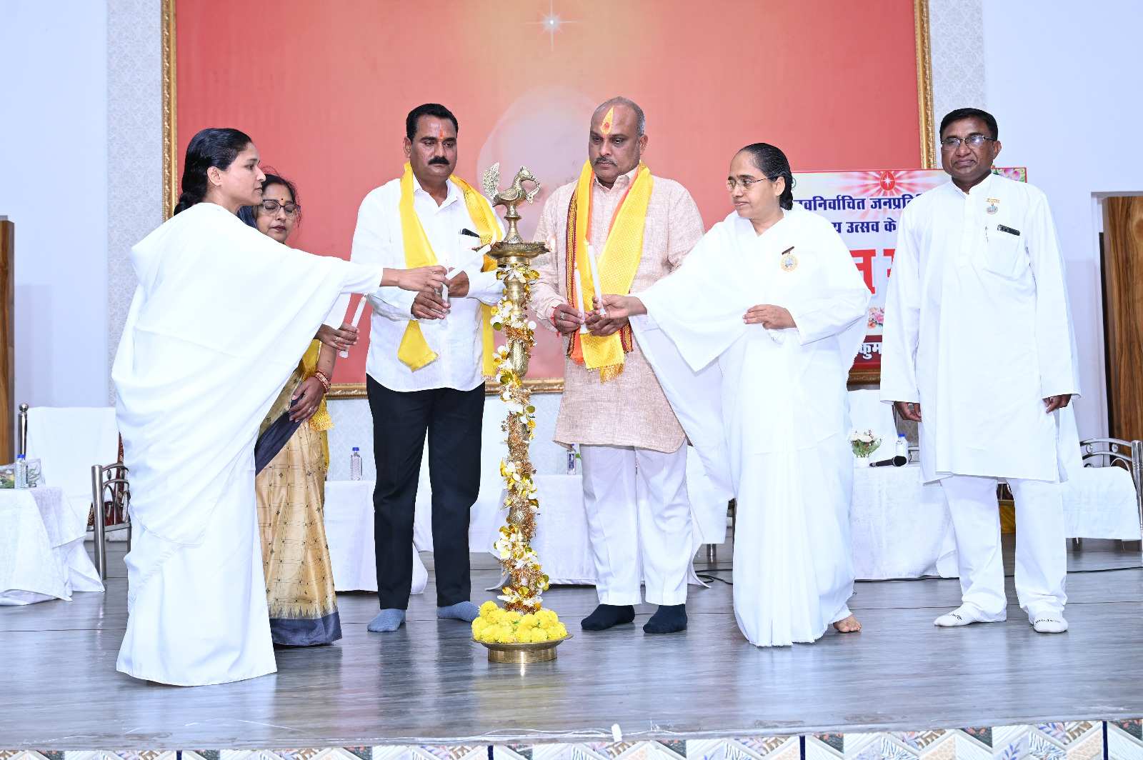 आनंद सरोवर मे नव निर्वाचित जन प्रतिनिधीयों (सरपंच, जनपद सदस्यों, जनपद अध्यक्षों) के सम्मान समारोह के अवसर पर मंच पर उपस्थित भ्राता ललित चंन्द्राकर जी – विधायक दुर्ग ग्रामीण, पवन शर्मा जी – उपाघ्यक्ष दुर्ग जिला पंचायत, प्रीति देवांगन – जनपद उपाघ्यक्ष धमधा, सेवाकेन्द्र संचालिका रीटा बहन व रूपाली बहन एवं सभा में उपस्थित नव निर्वाचित जन प्रतिनिधी व नृत्य की प्रस्तुती दुते हुए कुमारीयाँ।