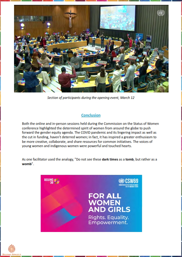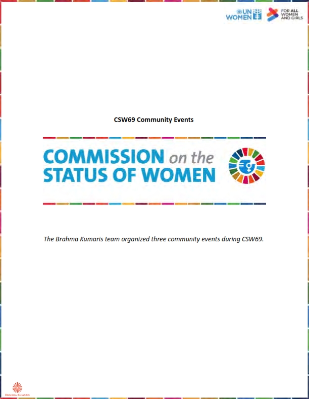 The complete news of service done by the BK UN Women’s team during the UN Commission on the Status of Women (CSW69) International Conference held in March. There has been shifts in various ways in the minds and hearts of those who came in contact with us, leaving them with feelings of hope, light, and renewed strength