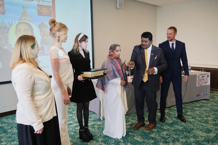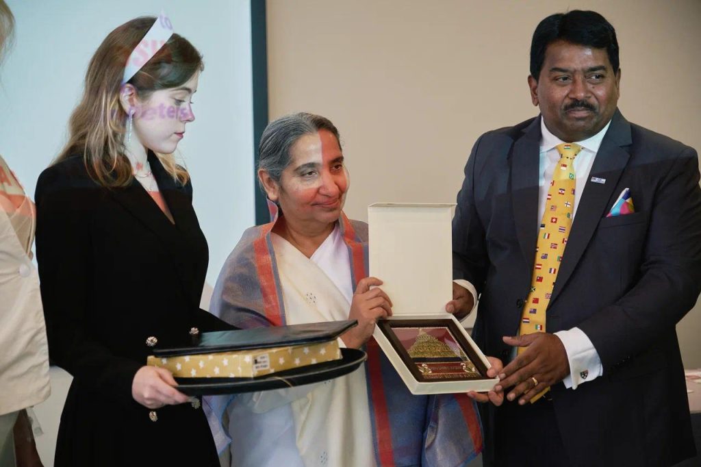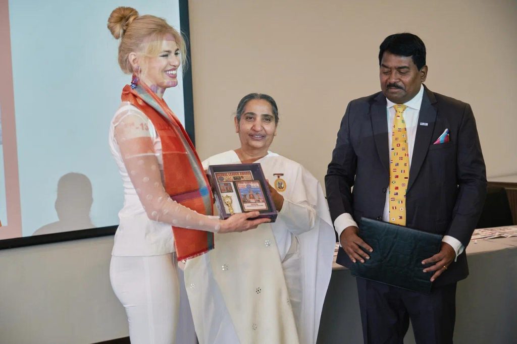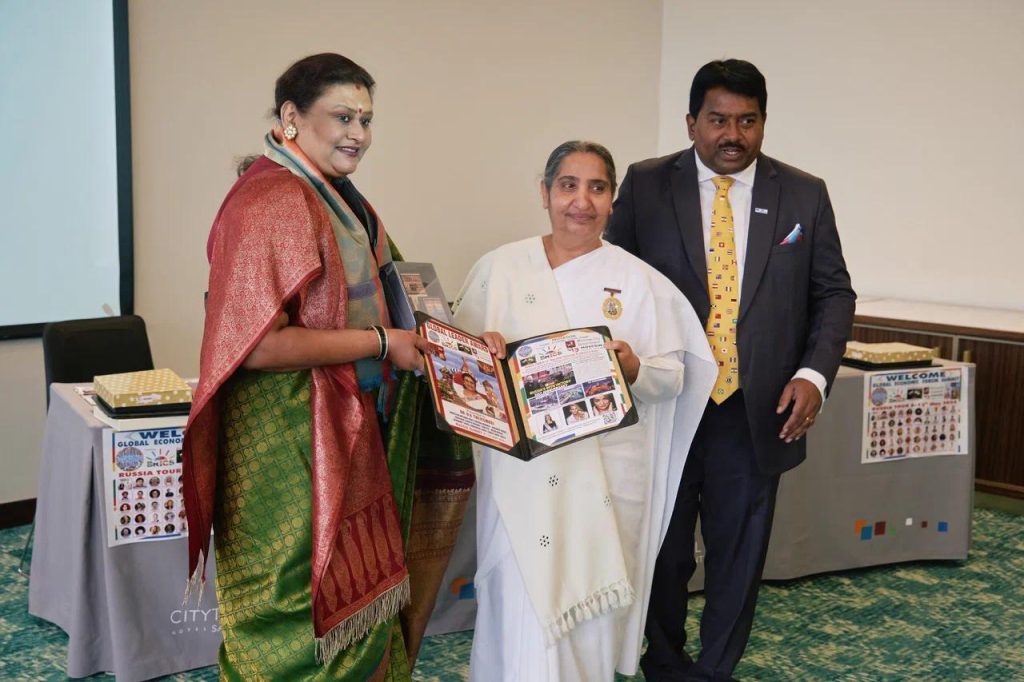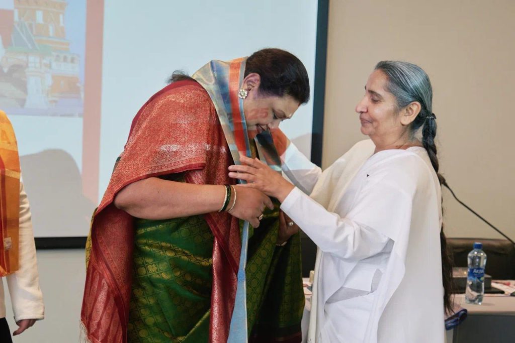 सेंट पिटर्सबर्ग, रशिया: सेंट पिटर्सबर्ग में आयोजित ग्लोबल ईकॅानॅामिक फोरम समिट में ब्रिक्स के सदस्य राष्ट्र के प्रतिनिधीयोके ऊपस्थिती में सेंट पिटर्सबर्ग के रिट्रीट सेंटर के डायरेक्टर बी के संतोष दीदी को ग्लोबल लिडर अवॅार्ड से सम्मानित किया गया। इस अवसर पर ग्लोबल ईकॅानॅामिक फोरम के अध्यक्ष हरिओम मारम, मिस रशिया वालेरिया अमिर, ब्रिक्स के गव्हर्निंग कमिटी मेंबर ॲन्ड्रयू चिरवा उपस्थित थे । बी के संतोष दीदी के हाथो से भारत से बी के डॅा दीपक हरके तथा अन्य अतिथीयों को ग्लोबल लिडर अवॅार्ड से सम्मानित किया। समिट में बी के डॅा सुवर्णा, बी के विकास को भी ग्लोबल लिडर अवॅार्ड से सम्मानित किया गया। संतोष दीदी ने सभी को संस्था की गतिविधीयो से अवगत कराकर राजयोग का परिचय दिया।