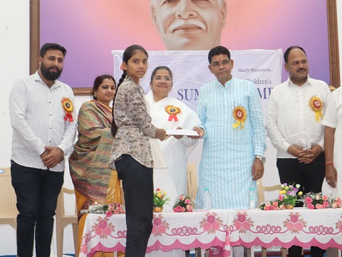 तिल्दा (छ ग) : बच्चों के लिए आयोजित समर कैंप के समापन समारोह में छत्तीसगढ़ के खेलकूद एवं युवा कल्याण, राजस्व एवं आपदा प्रबंधन मंत्री टंक राम वर्मा जी द्वारा प्रतियोगिता में विजयी बच्ची को पुरुस्कार प्रदान करते हुए, साथ में हैं रायपुर एवं सम्बंधित सभी सेवाकेन्द्रों की प्रमुख ब्रह्माकुमारी सविता दीदी , रायपुर जिला महामंत्री ग्रामीण अनिल अग्रवाल जी, नगर पालिका तिल्दा न्योरा अध्यक्ष बहन चन्द्रकला वर्मा तथा अन्य।