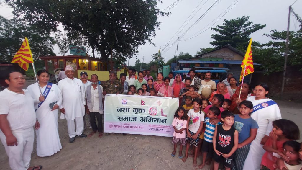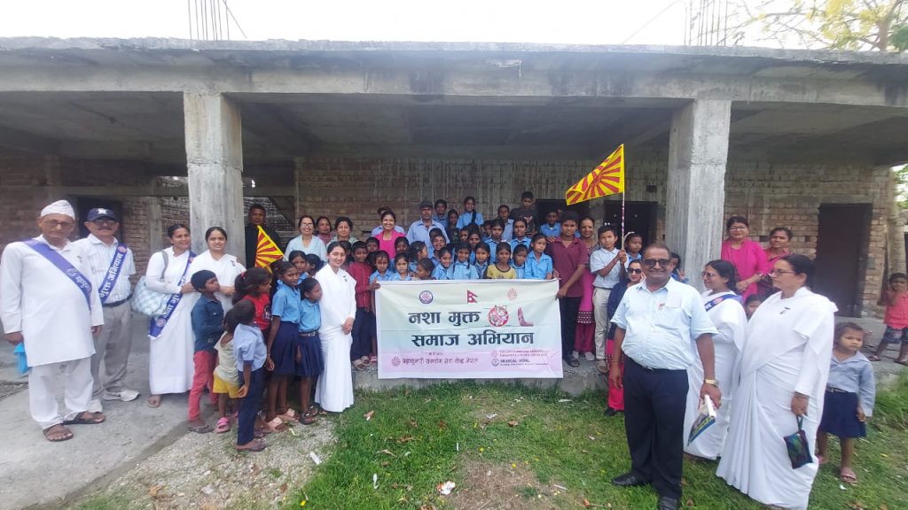 बिराटनगर,नेपाल। ब्रह्माकुमारी सेवाकेंद्र द्वारा 14 मई 2025 को नशा मुक्त भारत अभियान के अंतर्गत कुल 5 ध्यान एवं जागरूकता सत्र आयोजित किए गए, जिनमें कुल 916 लाभार्थियों ने भाग लिया। ये कार्यक्रम गौग्रहा मिडिल स्कूल (378 प्रतिभागी), श्री मिडिल स्कूल (262 प्रतिभागी), श्री जनता मिडिल स्कूल (68 प्रतिभागी), दक्षिण गेट (62 प्रतिभागी) तथा भगवती चौक (146 प्रतिभागी) पर संपन्न हुए। इन सत्रों में बच्चों, युवाओं, वयस्कों एवं वरिष्ठ नागरिकों को विभिन्न प्रकार के नशे, उनके दुष्परिणामों एवं नशे से बचाव के उपायों की जानकारी दी गई। प्रतिभागियों को ध्यान और सकारात्मक जीवनशैली अपनाने के तरीके सिखाए गए, जिससे वे मानसिक व शारीरिक रूप से स्वस्थ रह सकें। सभी ने जीवन भर नशा मुक्त रहने की प्रतिज्ञा ली और आत्मनिर्भर, संयमित एवं जागरूक जीवन जीने की प्रेरणा प्राप्त की।