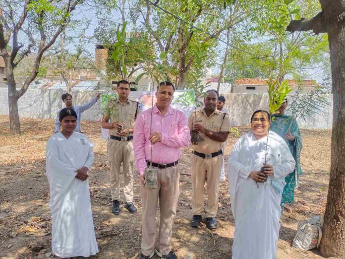 बिजावर, मध्य प्रदेश। विश्व पर्यावरण दिवस पर ब्रह्माकुमारी विद्यालय बिजावर की क्षेत्रीय संचालिका बीके प्रीति दीदी और सब जेल बिजावर के सहायक जेल अधीक्षक मुकेश कुमार मांझी द्वारा जेल प्रांगण में वृक्षारोपण का आयोजन किया गया। जिसमें धरती को पुनर्जीवित करने वाली हरियाली को अधिक से अधिक बढ़ने के संकल्प से जेल स्टाफ तथा ब्रह्माकुमारी परिवार द्वारा 5 जून को फलदार वृक्ष लगाकर पर्यावरण के प्रति हर एक की अपनी जिम्मेवारी के लिए जागरूक किया।