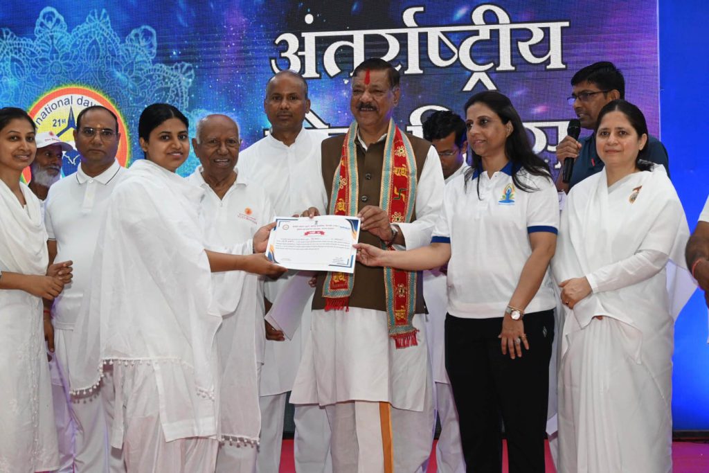 कार्यक्रम के दौरान वरिष्ठ योग प्रशिक्षक बीके बाबूलाल भाई ने ताडासन, वृक्षासन पादहस्तासन, अर्ध चक्रासन,त्रिकोणासन , वज्रासन,शशांकासन, मकरासन, भुजंगासन,शलभासन शवासन सहित अन्य प्राणायाम और योग के आसन कराते हुए इनके तन-मन को होने वाले फायदे बताए। इस दौरान अपने-अपने शहर में योग को बढ़ावा दे रहे लोगों को प्रमाण पत्र देकर सम्मानित किया गया। अतिथियों ने दीप प्रज्जवलन कर कार्यक्रम का शुभारंभ किया गया।
