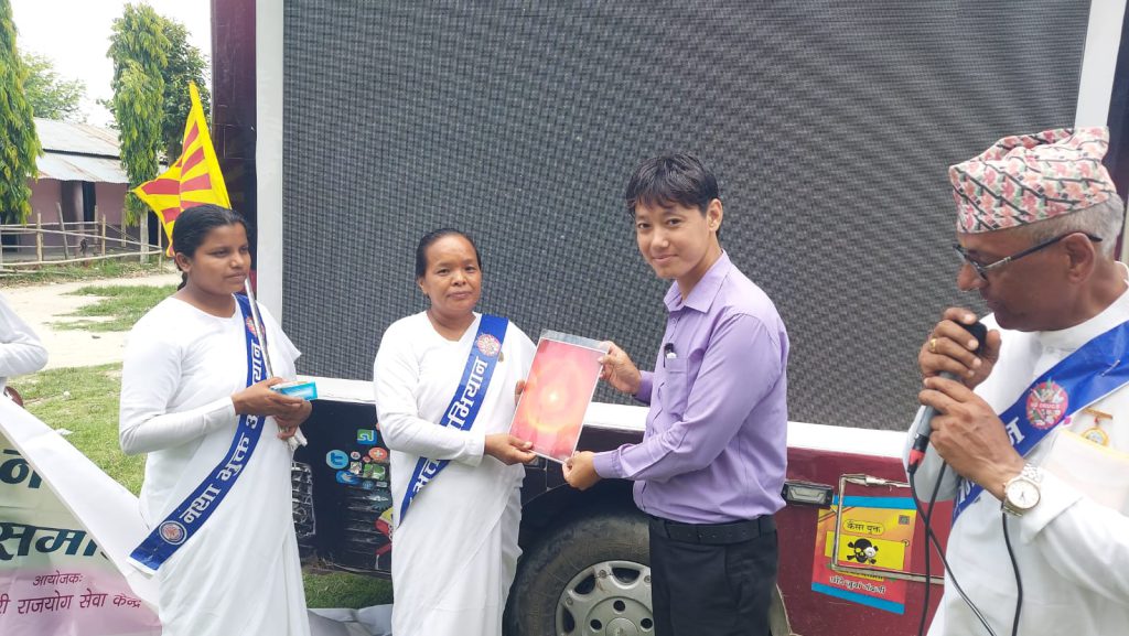 विराटनगर,नेपाल। ब्रह्माकुमारीज़ द्वारा नशा मुक्त भारत अभियान के अंतर्गत विभिन्न विद्यालयों व स्थलों पर कुल 5 ध्यान एवं जागरूकता सत्र आयोजित किए गए, जिनमें कुल 1523 लाभार्थियों ने सहभागिता की। Pinnacle Secondary School, Bal Jyoti Middle School, Siksha Vikash Secondary School और Siksha Secondary School के विद्यार्थियों को नशे के प्रकार, उनके दुष्परिणाम और नशे से बचाव के उपायों की जानकारी दी गई।