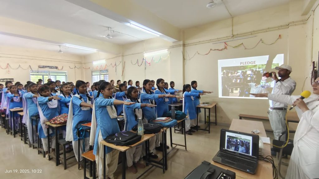 तिल्दा, छत्तीसगढ़ : ब्रह्माकुमारी सेवा केंद्र द्वारा हथबंद के शासकीय हाई स्कूल और आईटीआई में नशा मुक्त भारत अभियान के अंतर्गत जागरूकता कार्यक्रम आयोजित किया गया, जिसमें कुल 230 विद्यार्थियों और शिक्षकों ने भाग लिया। बीके प्रियंका दीदी ने नशे के दुष्परिणामों को वैज्ञानिक तथ्यों और चित्रों के माध्यम से स्पष्ट किया। उन्होंने बताया कि हर दिन तंबाकू से जुड़ी बीमारियों से लगभग 3000 लोगों की मृत्यु होती है और 90% नशा करने वाले 25 वर्ष से कम आयु के होते हैं।
