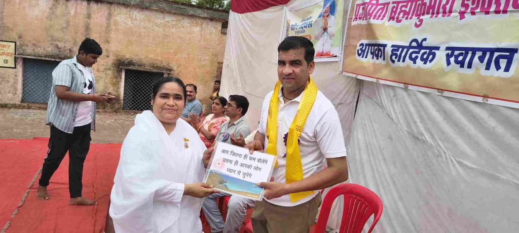 इस मौके पर बिजावर क्षेत्र संचाली का बीके प्रीती दीदी ने योग के बारे में समझाते हुए कहा कि योग हमारी भारतीय संस्कृति का अभिन्न अंग हमेशा से रहा, जो आज विश्व भर में अपनी एक विशेष पहचान बन चुका है। आगे उन्होंने अपने उद्बोधन में कहा कि योग जिसमें व्यायाम,आसन, प्राणायाम द्वारा हम अपने शरीर को स्वस्थ बनाते हैं, राजयोग (मेडिटेशन) जो मानसिक रूप से स्वस्थ बनाता है, जो अध्यात्म से ही संभव है। आज के परिवेश में इसकी अति आवश्यक है। साथ ही राजयोग का अभ्यास सकारात्मक संकल्पना द्वारा सभी को करवाया।