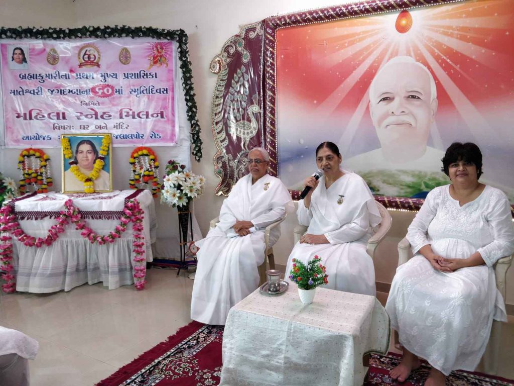 नवसारी,गुजरात : ब्रह्माकुमारीज़ शिव उपवन, जलालपोर (नवसारी सेवा केंद्र) द्वारा ब्रह्माकुमारीज़ संस्था की प्रथम मुख्य प्रशासिका मातेश्वरी जगदम्बा के 60वें स्मृति दिवस के उपलक्ष्य में “घर बने मंदिर” विषय पर विशेष महिला स्नेह मिलन का भव्य आयोजन किया गया।