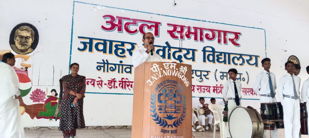 नौगांव, मध्य प्रदेश । अटल सभागार में उपस्थित कक्षा 6 से 12वीं तक के सभी छात्र-छात्राओं से गुड मॉर्निंग करते हुए आदरणीय नंदा बहन जी ने कहा कि इस विद्यालय में आप अपने टीचर से पुस्तकों का ज्ञान प्राप्त कर डिग्री के साथ-साथ जीवन में पद पोजीशन भी प्राप्त कर लेते हैं। लेकिन यह सभी हासिल करते हुए यदि जीवन में कोई समस्या आती है तो उसका सामना करने के लिए आध्यात्मिक ज्ञान तथा राजयोग मेडिटेशन की आवश्यकता होती है। उसके लिए हम अपने को भगवान का बच्चा समझ उस सुप्रीम गॉडफादर जिसे टीचर कहते हैं उसे याद करें तो हर मुश्किल का सामना कर सकते हैं। पढ़ाई में टेंशन की जगह अटेंशन रखें। बीके रवि शंकर राय जी ने सभी विद्यार्थियों के समक्ष अपने जीवन के सुखद अनुभव साझा करते हुए कहा कि जब भी डर लगे तो उसे परमात्मा को याद करो तो हमारा डर दूर हो जाएगा। प्रिंसिपल साहब श्री नत्थ प्रसाद चंचल जी ने आदरणीय नंदा बहन जी का धन्यवाद करते हुए कहा कि आप हमारे विद्यालय में विद्यार्थियों के लिए प्रति माह आध्यात्मिक ज्ञान देने के लिए स्वयं पधारे या अपने किसी प्रतिनिधि को भेजते रहें। अटल सभागार में अटल सभागार में आदरणीय नंदा बहन जी, प्रिंसिपल साहब श्री नाथू प्रसाद चंचल जी, बीके रवि शंकर राय जी, विद्यालय का समस्त स्टाफ एवं सभी विद्यार्थी उपस्थित रहे।