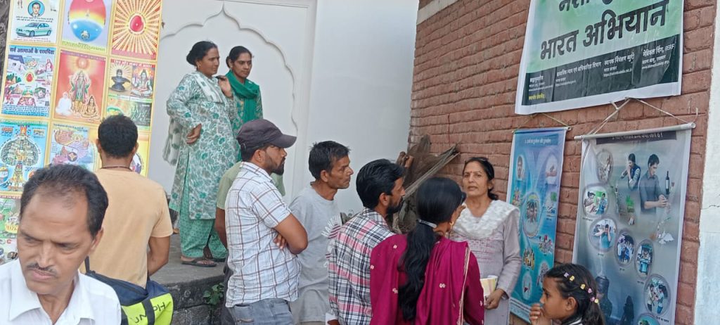सुंदरनगर,हिमाचल प्रदेश: प्रजापिता ब्रह्मा कुमारीज़ सेवाकेंद्र के क्षेत्र कनैड, मेरमसीत और गुरुकोठा में नशा मुक्ति अभियान के अंतर्गत लगभग कई भाई बहनों को जागरूक करने के लिए नशा मुक्ति और आध्यात्मिक ज्ञान की प्रदर्शनी पर समझाया गया। लगभग ३०० से ४०० लोगों ने इन प्रदर्शनी से लाभ उठाया । नशा मुक्त जीवन के प्रति जागरूक करते हुए राजयोगिनी ब्रह्माकुमारी नवीना बहन ने कहा की नशीले द्रव्यों के आलावा हमारी अनुचित आदतों या गलत संस्कारों से भी हमें अपने को मुक्त करने की आवश्यकता है। इस सेवा के दौरान कई ब्रह्मा ह्मकुमार भाई बहन भी सेवा अर्थ उपस्त्थित थे।