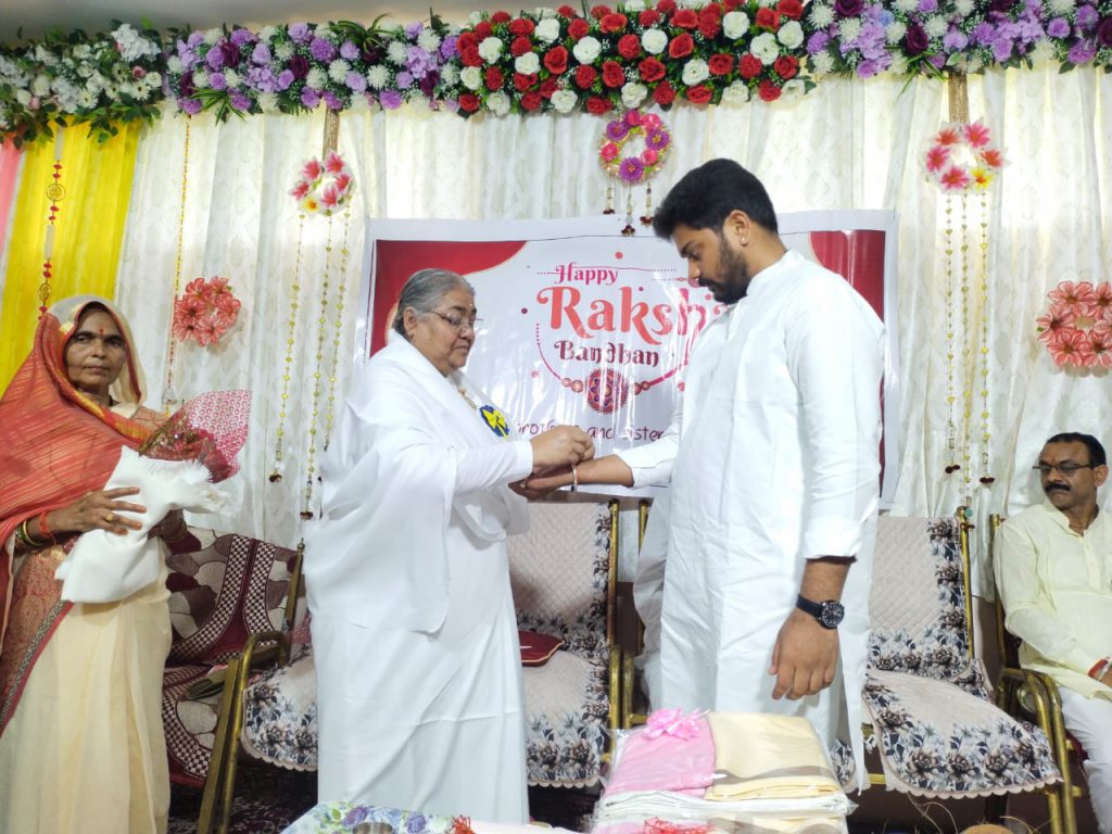बिजावर,मध्य प्रदेश। के गुलगंज रोड शिव सिटी कॉलोनी स्थित ब्रह्माकुमारी ईश्वरीय विश्वविद्यालय में मंगलवार को अलौकिक रक्षाबंधन महोत्सव कार्यक्रम का आयोजन किया गया