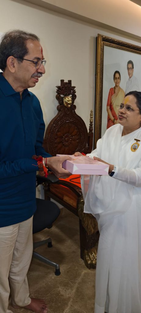 Brahmakumaris Yog Bhavan, Mumbai Ghatkopar Subzone celebrated divine Rakshabandhan, by tieing the holy Rakhi to eminent personalities including Former Chief Minister of Maharashtra Uddhav Thackrey Ji, who is currently the President of Maha Vikas Aghadi & President of Shivsena (UBT).