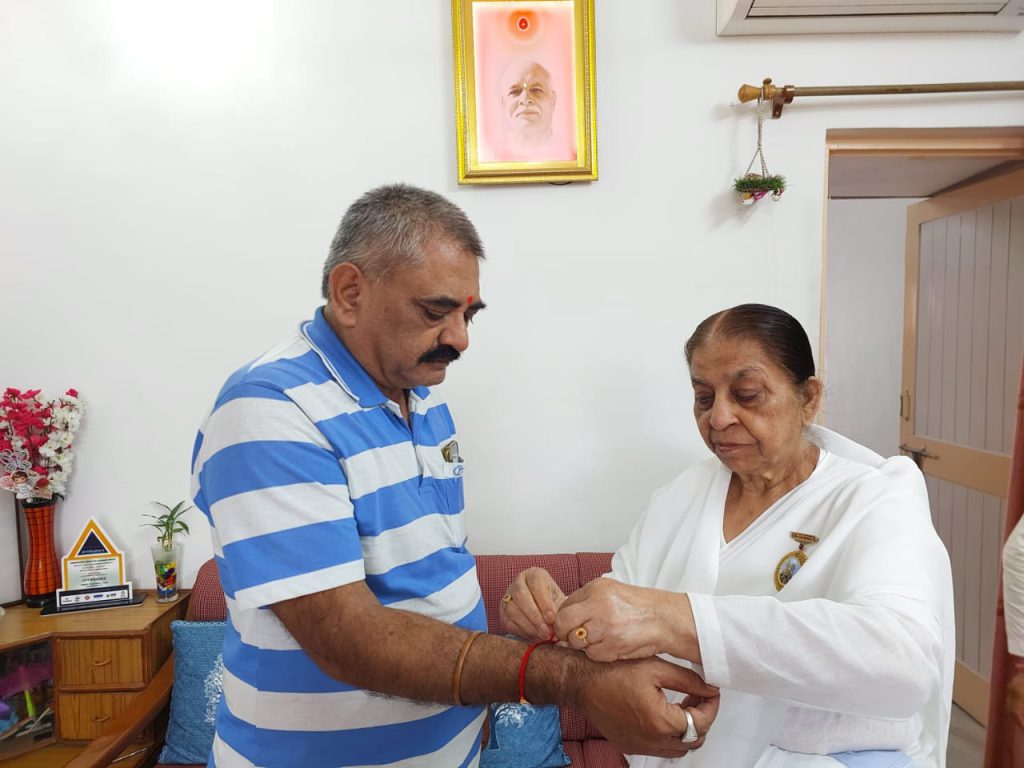 वोर्ड नंबर 13 के कॉर्पोरटर बालासाहेब सुर्वे को राखी बाँधते हुए बीके राज दीदी साथ में सरिता बहन l