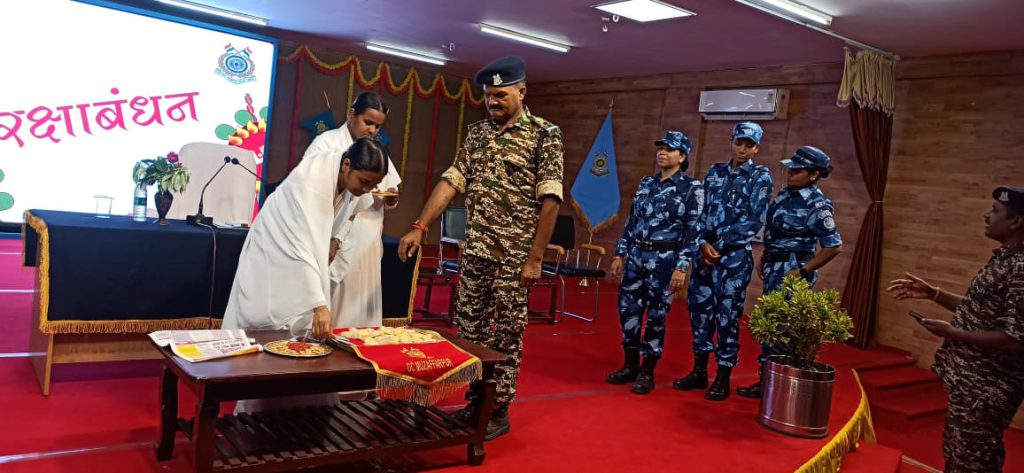 सीआरपीएफ ग्रुप सेंटर मुजफ्फरपुर में रक्षाबंधन कार्यक्रम संपन्न हुआ लगभग 35 सीआरपीएफ के जवान भाइयों एवं बहनों को रक्षा सूत्र बांधा गया एवं रक्षा बंधन के आध्यात्मिक रहस्य एवं राजयोग मेडिटेशन का अभ्यास कराया गया । कार्यक्रम में बीके सीता बहन एवं बीके पुष्पा बहन ने रक्षा सूत्र बांधा साथ में बीके संजीव भाई एवं बीके भास्कर भाई अपनी शुभकामनाएं प्रदान की अंत में डिप्टी कमांडेंट सीआरपीएफ दैवी भ्राता संजीव कुमार झा जी ने अपनी शुभकामनाएं प्रदान की एवं संस्था के प्रति अपनी धन्यवाद ज्ञापित किया।