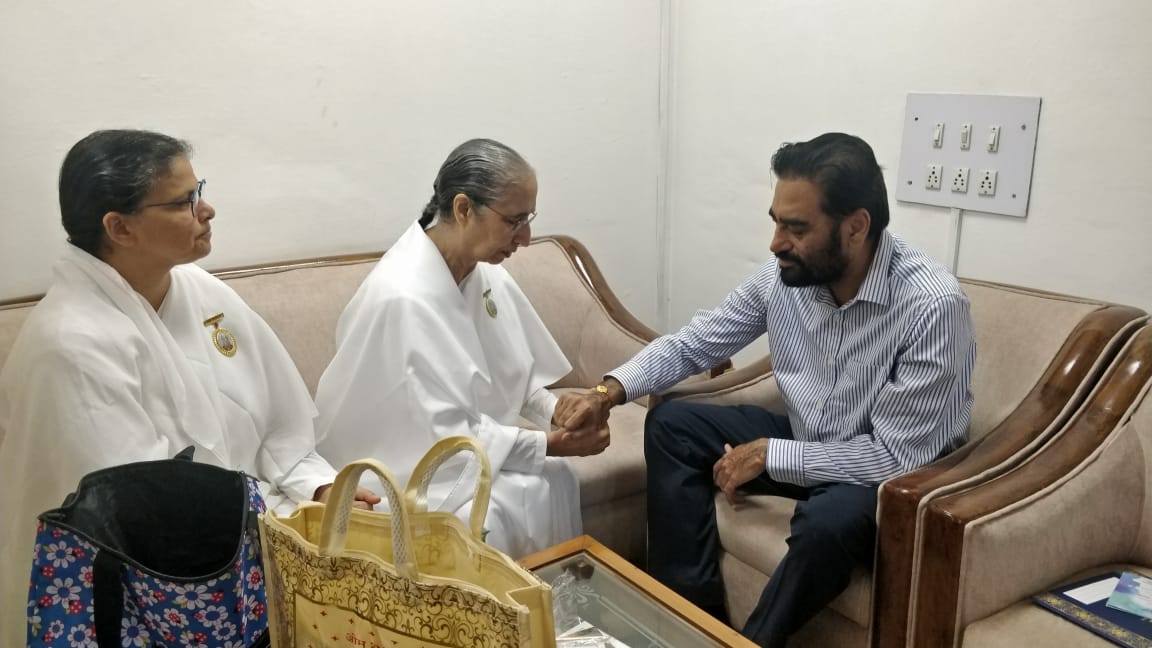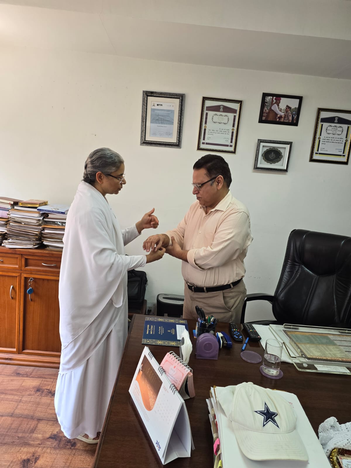 चंडीगढ़: श्री नायब सिंह सैनी – माननीय मुख्यमंत्री, हरियाणा को रक्षा सूत्र बांधते हुए ब्रह्मा कुमारी बहनें।