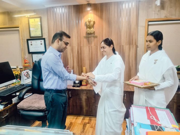 मुख पृष्ठराज्यगुजरातभुज -कच्छ : जिला कलेक्टर भ्राता आनंद पटेल,डी.एस.पी. भ्राता विकास सुंदे को... गुजरातरक्षाबंधनसमाचार भुज -कच्छ : जिला कलेक्टर भ्राता आनंद पटेल,डी.एस.पी. भ्राता विकास सुंदे को रक्षासूत्र बांधते हुए By ओम शांति मीडिया August 27, 2025 0 215 साझा करना FacebookTwitterPinterestWhatsApp भुज -कच्छ,गुजरात। जिला कलेक्टर भ्राता आनंद पटेल को रक्षासूत्र बांधते बी.के.बीनाबहन, बी.के.पूजाबहन । भुज -कच्छ : डी.एस.पी. भ्राता विकास सुंदे को रक्षासूत्र बांधते बी.के. रक्षाबहन । साझा करना FacebookTwitterPinterestWhatsApp पिछला लेखअहमदाबाद: दादी प्रकाशमणि जी के 18 वी पुण्यतिथि के निमित इंडिया कॉलोनी सेवाकेंद्र द्वारा रक्तदान केम्प आयोजित किया गया अगला लेखकादमा:प्रजापिता ब्रह्माकुमारी ईश्वरीय विश्वविद्यालय की झोझूकलां-कादमा शाखा के समाज सेवा प्रभाग के तत्वावधान में राजयोगिनी दादी प्रकाशमणि के 18वीं पुण्य तिथि सांगवान अस्पताल में भारतीय सेना के लिए विशाल स्वैच्छिक रक्तदान ओम शांति मीडिया RELATED ARTICLES महाराष्ट्र पुणे धनकवडी: माउंट आबू ब्रह्माकुमारी अंतरराष्ट्रीय मुख्यालय से पधारे राजयोगिन बी के उषा दीदी जी के पावन सानिध्य में मनाया गया वर्धापन दिवस December 14, 2025 राजस्थान टोंक: विश्व मधुमेह दिवस पर प्रजापिता ब्रह्माकुमारी ईश्वरीय विश्व विद्यालय के राजयोग भवन में मधुमेह और स्वास्थ्य विषय पर कार्यक्रम आयोजित December 14, 2025 राजस्थान भरतपुर-: हाउसिंह बोर्ड कॉलोनी सेवाकेंद्र पर श्रीमती इंदु शर्मा, संयुक्त निदेशक, आयुर्वेद विभाग, सेवाकेंद्र आगमन December 14, 2025 कोई जवाब दें जवाब कैंसिल करें टिप्पणी: कृपया अपनी टिप्पणी दर्ज करें! नाम:* कृपया अपना नाम यहाँ दर्ज करें ईमेल:* आपने एक गलत ईमेल पता दर्ज किया है! कृपया अपना ईमेल पता यहाँ दर्ज करें वेबसाइट: अगली बार टिप्पणी के लिए इस ब्राउज़र में मेरा नाम, ईमेल और वेबसाइट सहेजें Most Popular जैसे हमारे संस्कार होते, वैसे ही हमारी दूसरों से अपेक्षाएं रहती December 14, 2025 पुणे धनकवडी: माउंट आबू ब्रह्माकुमारी अंतरराष्ट्रीय मुख्यालय से पधारे राजयोगिन बी के उषा दीदी जी के पावन सानिध्य में मनाया गया वर्धापन दिवस December 14, 2025 टोंक: विश्व मधुमेह दिवस पर प्रजापिता ब्रह्माकुमारी ईश्वरीय विश्व विद्यालय के राजयोग भवन में मधुमेह और स्वास्थ्य विषय पर कार्यक्रम आयोजित December 14, 2025 भरतपुर-: हाउसिंह बोर्ड कॉलोनी सेवाकेंद्र पर श्रीमती इंदु शर्मा, संयुक्त निदेशक, आयुर्वेद विभाग, सेवाकेंद्र आगमन December 14, 2025 और अधिक लोड करें Recent Comments ओम शांति मीडिया on आजादी का अमृत महोत्सव भारत स्वर्णिम संस्कृति की ओर Bkdev on आजादी का अमृत महोत्सव भारत स्वर्णिम संस्कृति की ओर