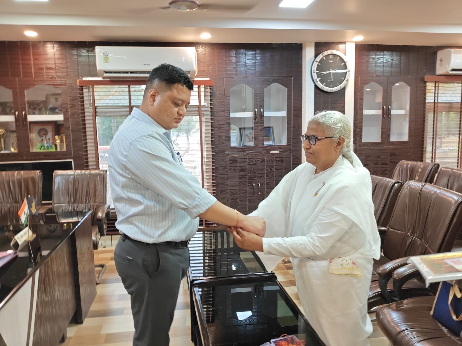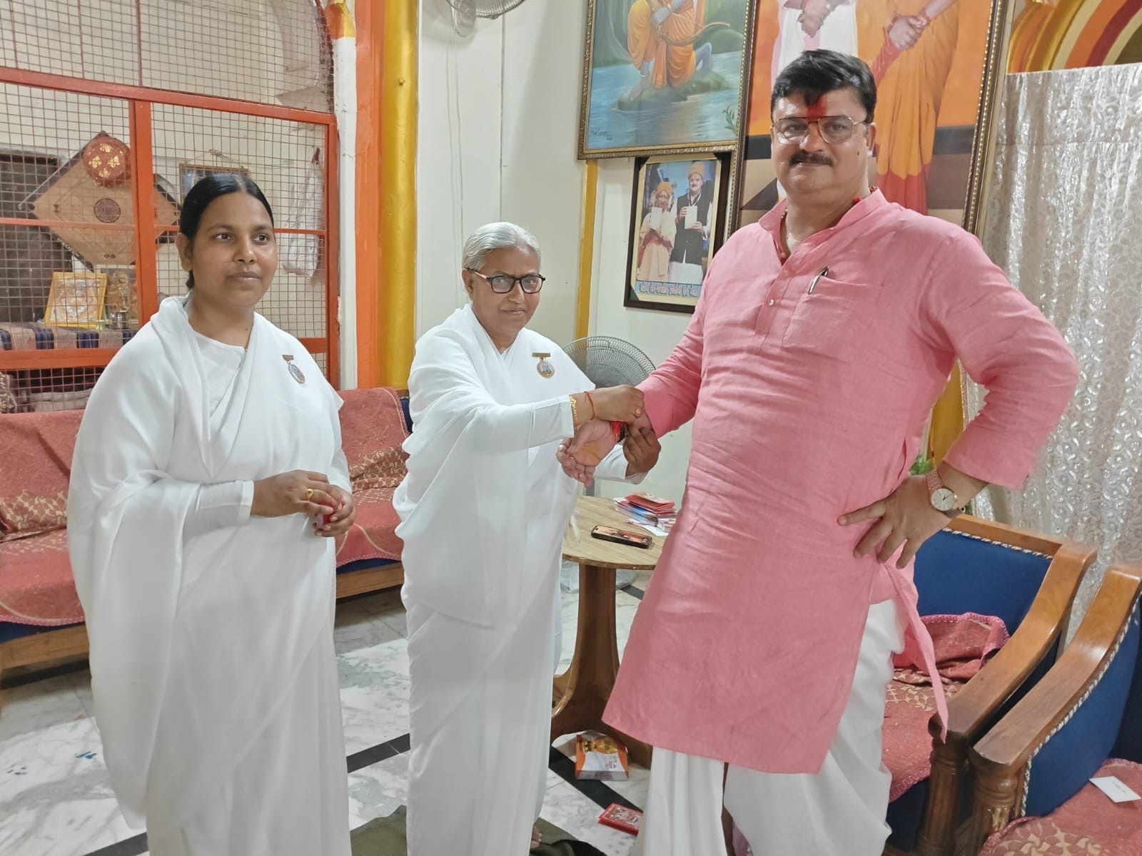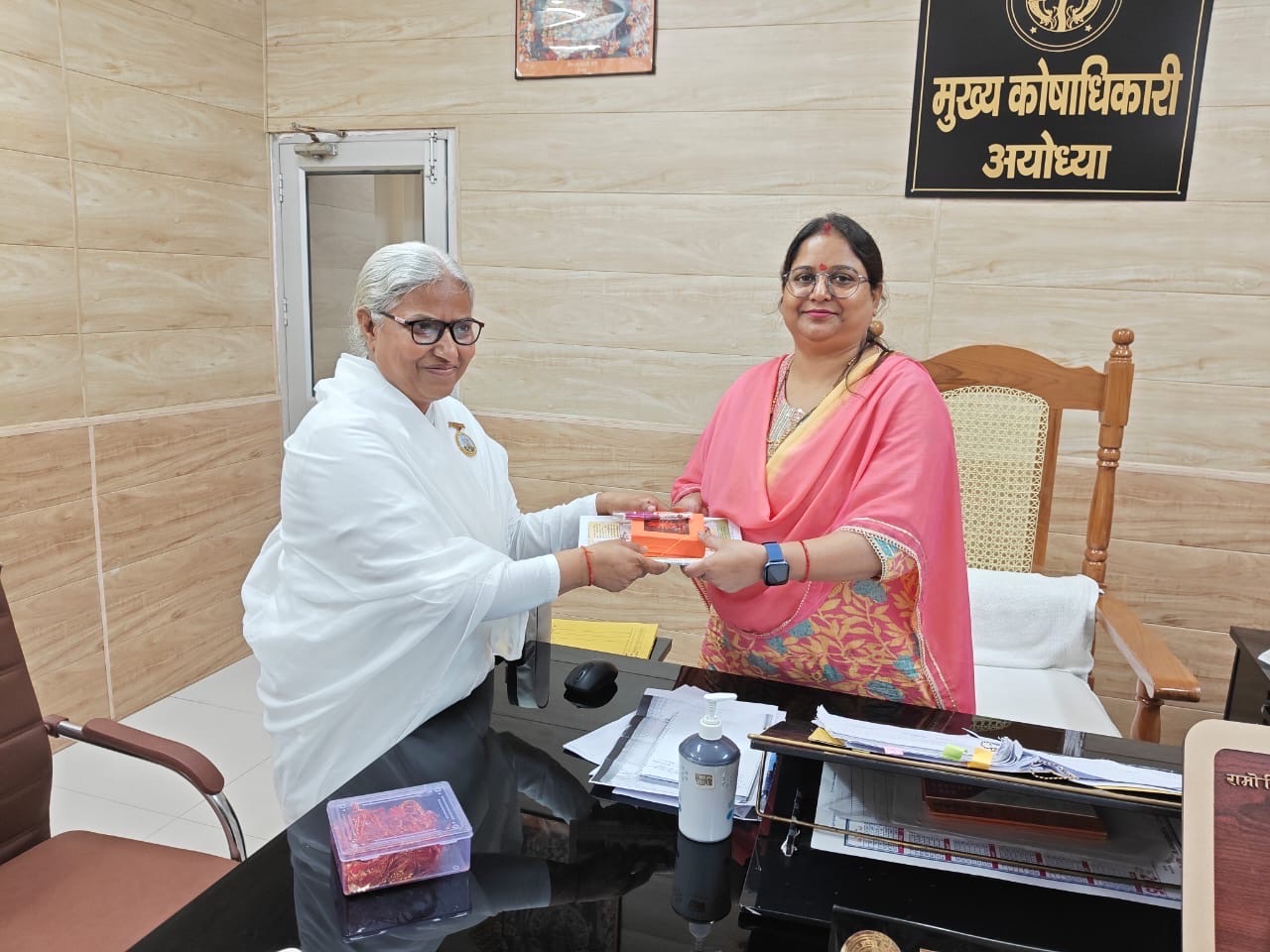 अयोध्य,उत्तर प्रदेश: पूर्व सांसद – अयोध्या – माननीय श्री लल्लू सिंह, विधायक – अयोध्या, श्री वेद प्रकाश गुप्ता, कमिश्नर – अयोध्या – श्री राजेश कुमार, मेयर – अयोध्या – महंत श्री गिरीश पति त्रिपाठी, जिलाधिकारी – अयोध्या – श्री निखिल टीकाराम फुंडे, Vice Chairman – IAS – अयोध्या विकास प्राधिकरण – अयोध्या – श्री अश्विनी कुमार पांडे, मुख्य विकास अधिकारी – अयोध्या – IAS – श्री कृष्ण कुमार सिंह, एच.जे.एस. – डिस्ट्रिक्ट एंड सेशन्स जज – अयोध्या – श्री रननजय कुमार वर्मा, मुख्य कोषाधिकारी – अयोध्या – श्रीमति ममता सिंह, नगर आयुक्त – अयोध्या – श्री जयेन्द्र कुमार, उप जिलाधिकारी (SDM) – बीकापुर – अयोध्या – सुश्री श्रेया, तहसीलदार – बीकापुर – अयोध्या श्री दिनेश कुमार, अपर पुलिस अधीक्षक – ग्रामीण – श्री बलवंत, CO सिटी – अयोध्या – श्री शैलेंद्र सिंह, SHO – बीकापुर – अयोध्या – श्री लालचंद सरोज, डिस्ट्रिक्ट एग्रीकल्चर ऑफिसर – श्री ओ.पी. मिश्रा, उप कृषि निदेषक – अयोध्या – डॉ. पी.के. कन्नौजिया – को स्थानीय सेवा केंद्र प्रभारी बी.के. शशि बहन ने आत्म-स्मृति का तिलक, राखी एवं ईश्वरीय सौगात भेंट की।