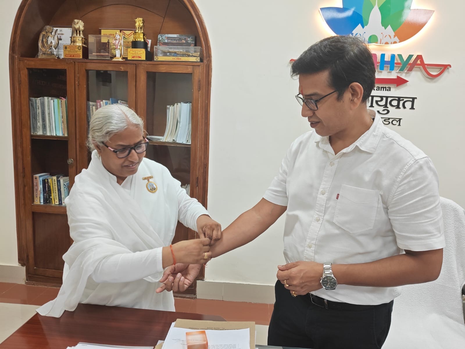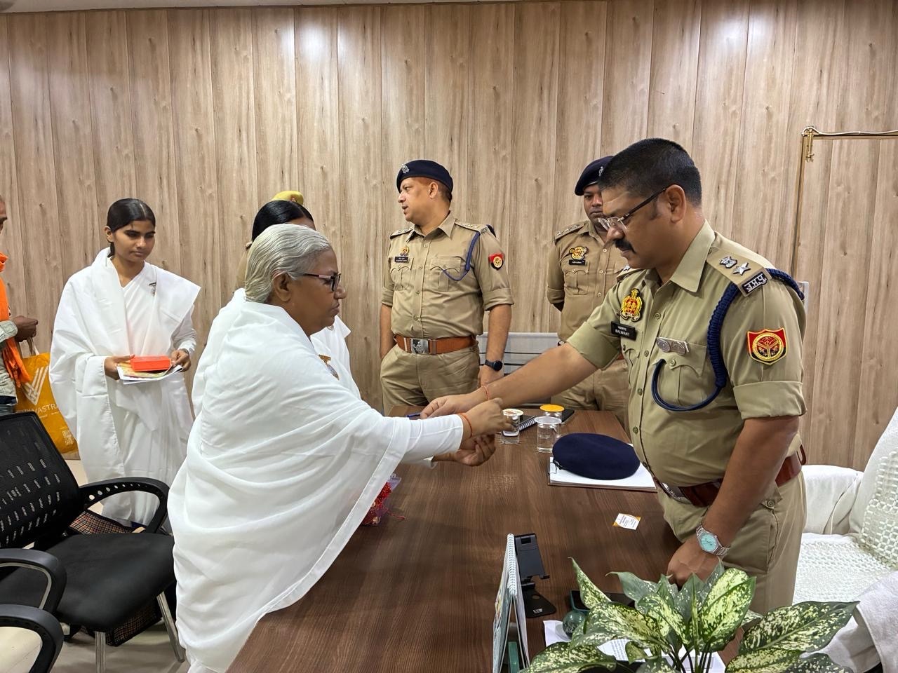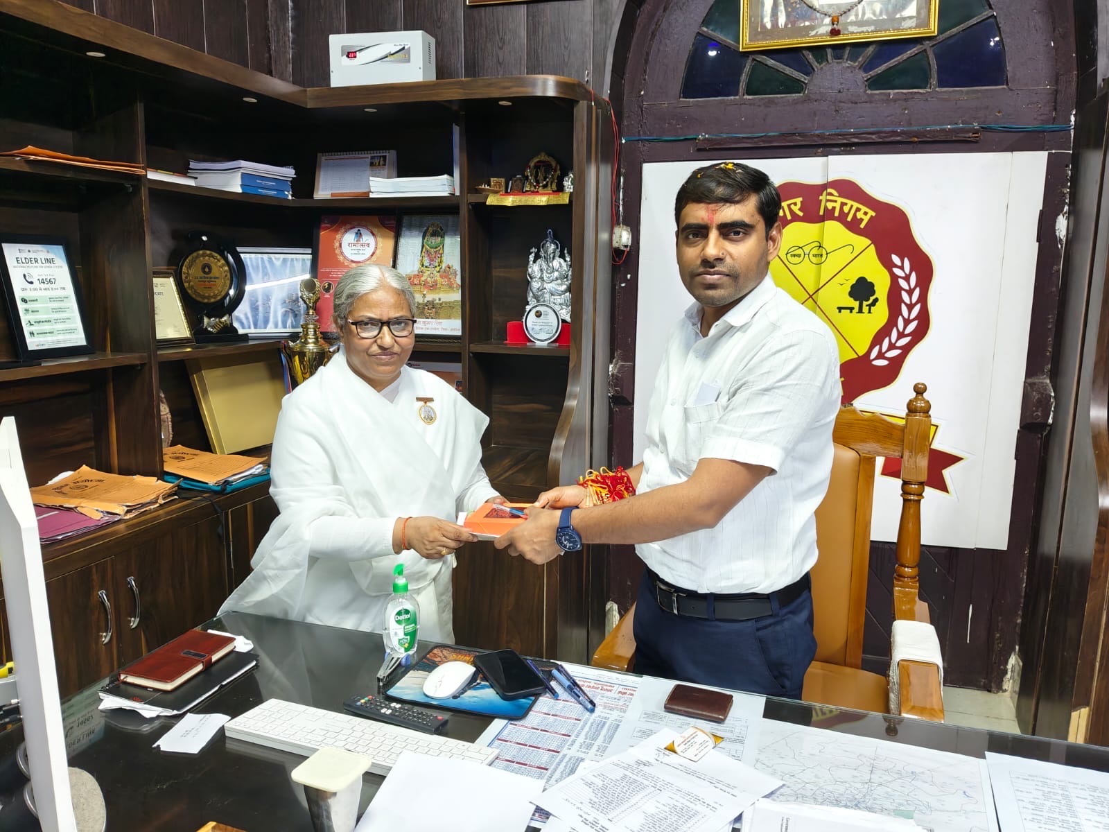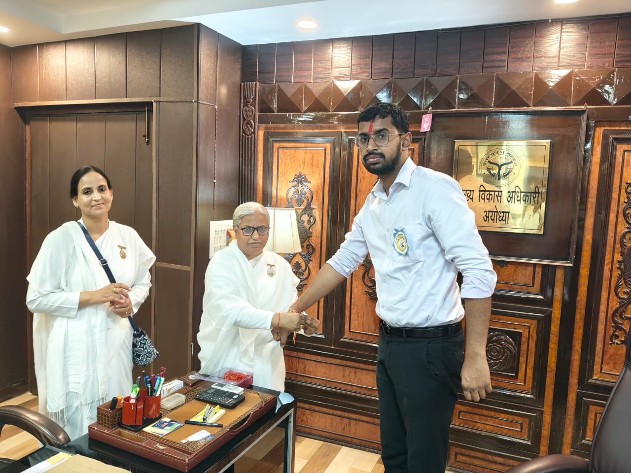 अयोध्य,उत्तर प्रदेश: पूर्व सांसद – अयोध्या – माननीय श्री लल्लू सिंह, विधायक – अयोध्या, श्री वेद प्रकाश गुप्ता, कमिश्नर – अयोध्या – श्री राजेश कुमार, मेयर – अयोध्या – महंत श्री गिरीश पति त्रिपाठी, जिलाधिकारी – अयोध्या – श्री निखिल टीकाराम फुंडे, Vice Chairman – IAS – अयोध्या विकास प्राधिकरण – अयोध्या – श्री अश्विनी कुमार पांडे, मुख्य विकास अधिकारी – अयोध्या – IAS – श्री कृष्ण कुमार सिंह, एच.जे.एस. – डिस्ट्रिक्ट एंड सेशन्स जज – अयोध्या – श्री रननजय कुमार वर्मा, मुख्य कोषाधिकारी – अयोध्या – श्रीमति ममता सिंह, नगर आयुक्त – अयोध्या – श्री जयेन्द्र कुमार, उप जिलाधिकारी (SDM) – बीकापुर – अयोध्या – सुश्री श्रेया, तहसीलदार – बीकापुर – अयोध्या श्री दिनेश कुमार, अपर पुलिस अधीक्षक – ग्रामीण – श्री बलवंत, CO सिटी – अयोध्या – श्री शैलेंद्र सिंह, SHO – बीकापुर – अयोध्या – श्री लालचंद सरोज, डिस्ट्रिक्ट एग्रीकल्चर ऑफिसर – श्री ओ.पी. मिश्रा, उप कृषि निदेषक – अयोध्या – डॉ. पी.के. कन्नौजिया – को स्थानीय सेवा केंद्र प्रभारी बी.के. शशि बहन ने आत्म-स्मृति का तिलक, राखी एवं ईश्वरीय सौगात भेंट की।