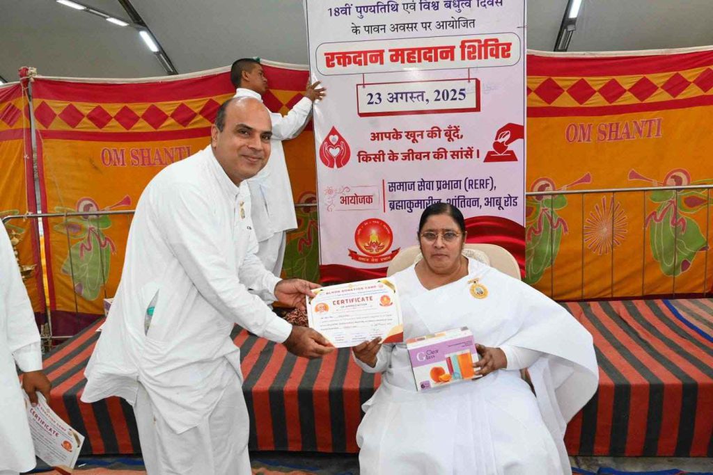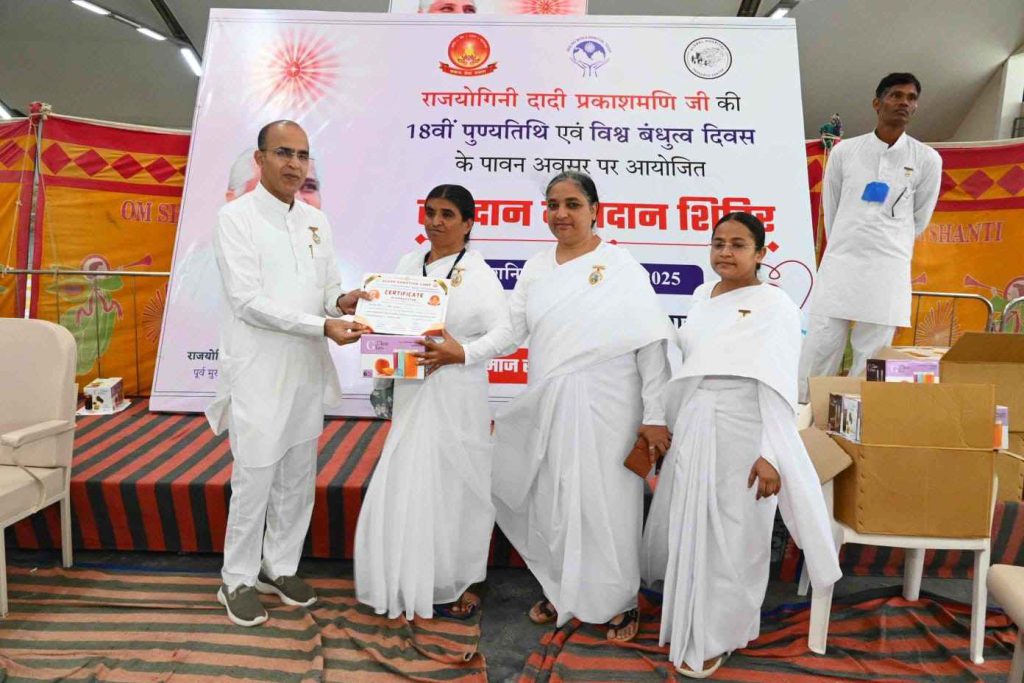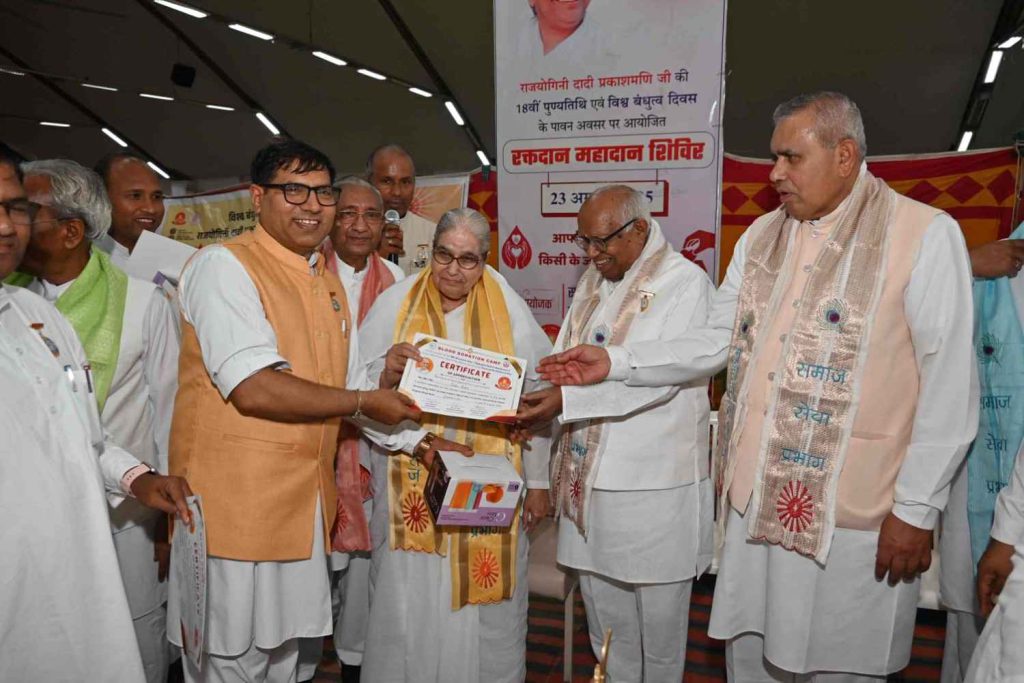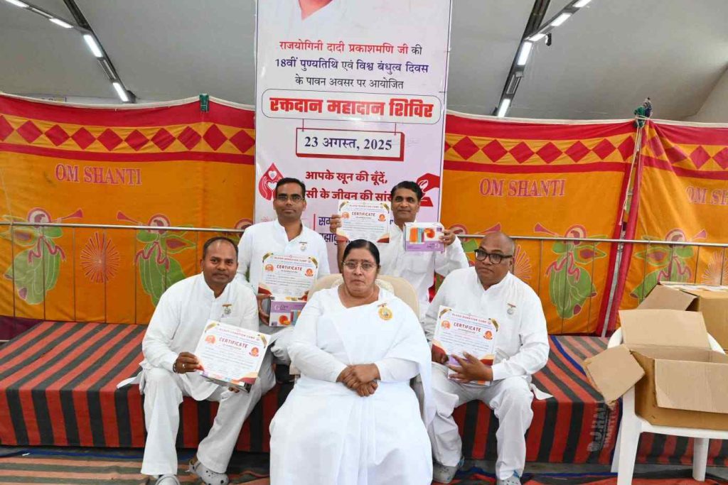 बता दें कि पूर्व मुख्य प्रशासिका राजयोगिनी दादी प्रकाशमणि की 18वीं पुण्यतिथि (25 अगस्त 2025) विश्व बंधुत्व दिवस के उपलक्ष्य में समाजसेवा प्रभाग द्वारा भारत सहित नेपाल में रक्तदान महाअभियान चलाया जा रहा है। संस्थान के भारत व नेपाल के सेवाकेंद्रों पर 22, 23, 24 और 25 अगस्त तक विशाल रक्तदान शिविर आयोजित जाएंगे। अभियान के तहत डेढ़ लाख यूनिट रक्तदान का संकल्प लिया गया है।