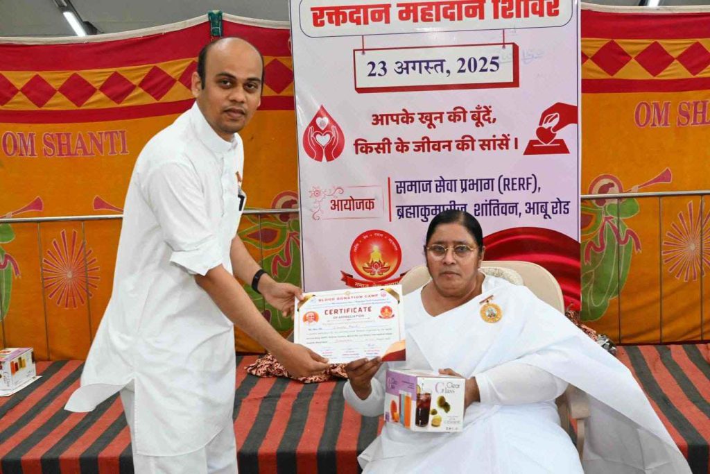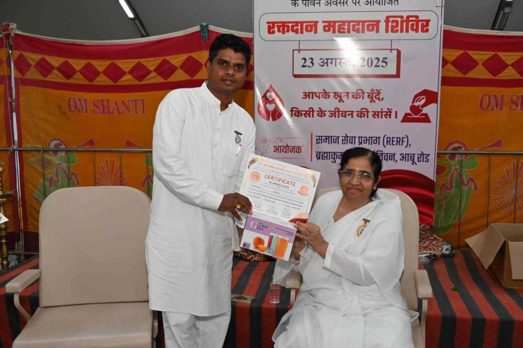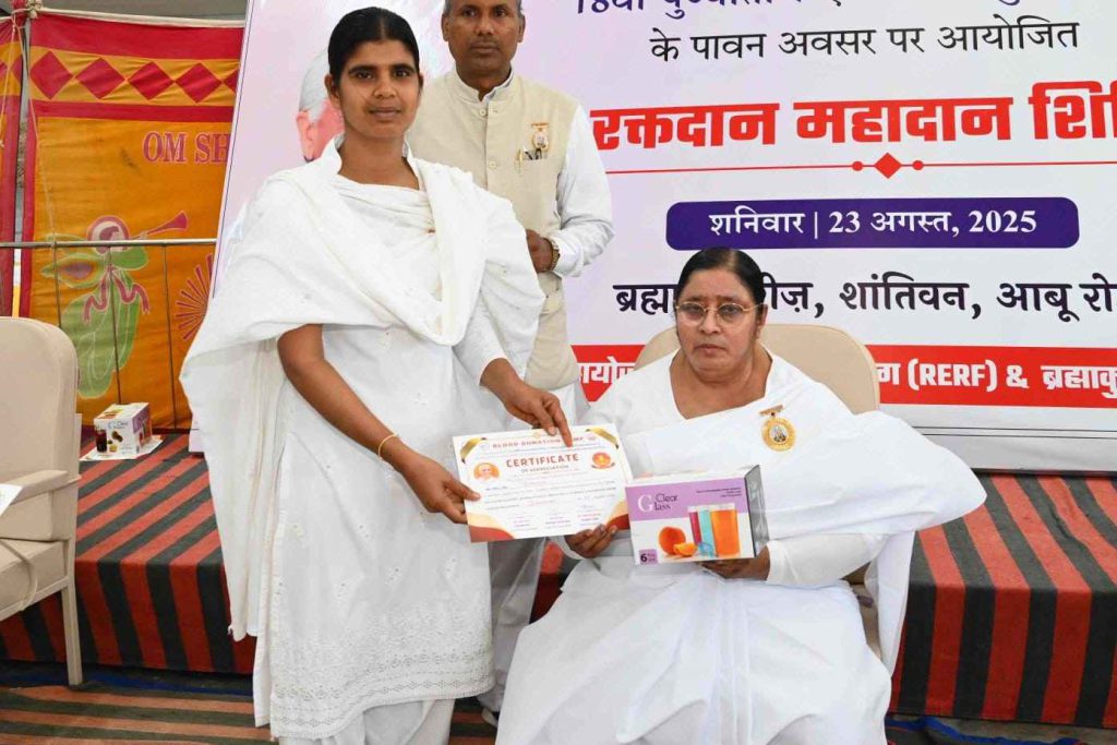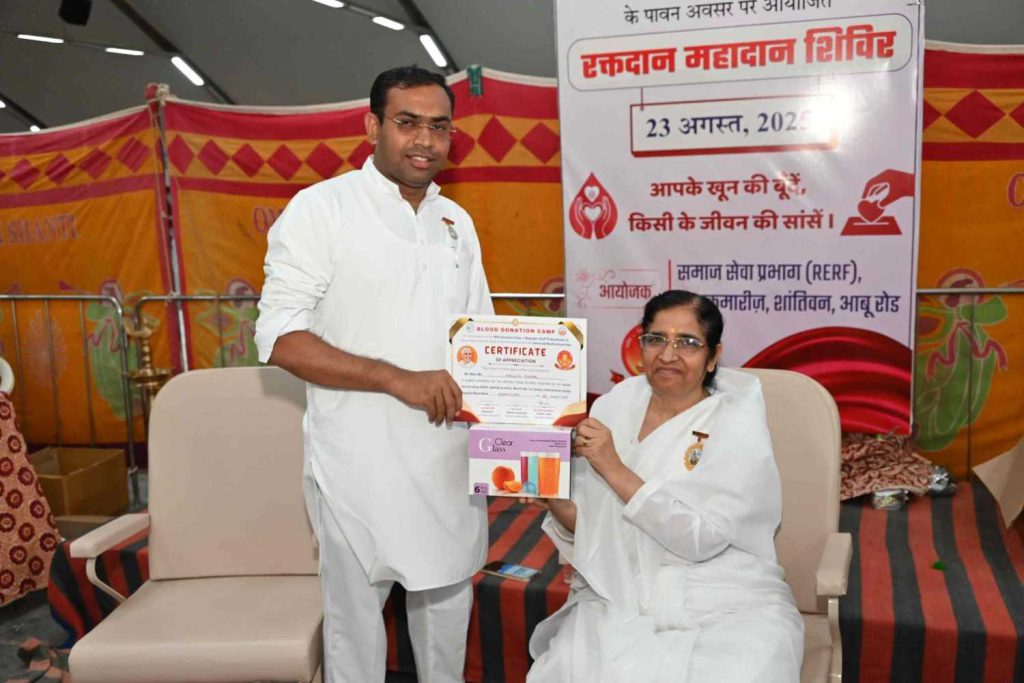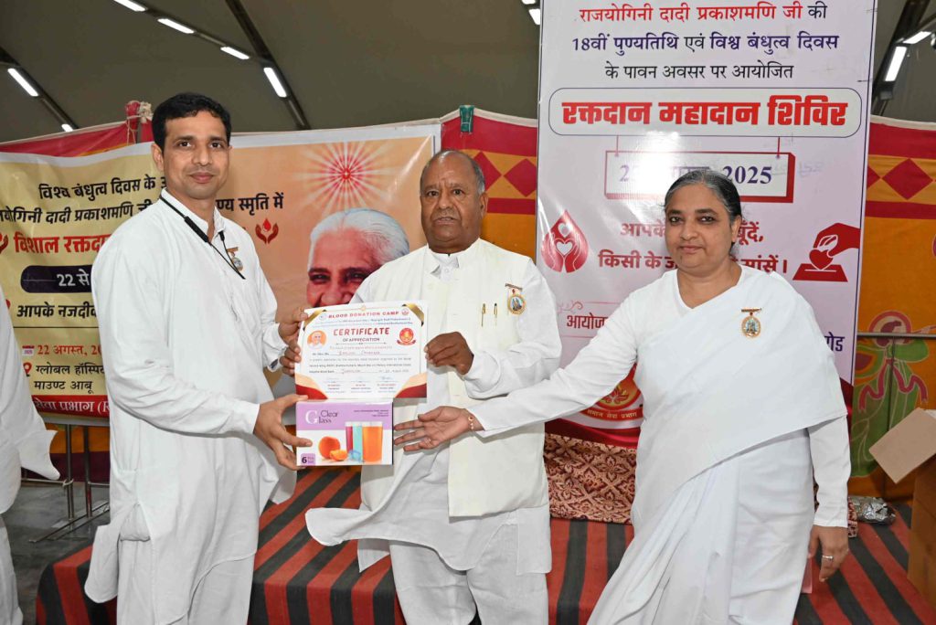 बता दें कि पूर्व मुख्य प्रशासिका राजयोगिनी दादी प्रकाशमणि की 18वीं पुण्यतिथि (25 अगस्त 2025) विश्व बंधुत्व दिवस के उपलक्ष्य में समाजसेवा प्रभाग द्वारा भारत सहित नेपाल में रक्तदान महाअभियान चलाया जा रहा है। संस्थान के भारत व नेपाल के सेवाकेंद्रों पर 22, 23, 24 और 25 अगस्त तक विशाल रक्तदान शिविर आयोजित जाएंगे। अभियान के तहत डेढ़ लाख यूनिट रक्तदान का संकल्प लिया गया है।